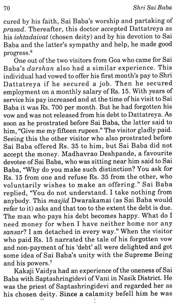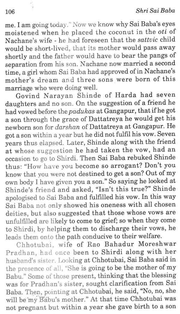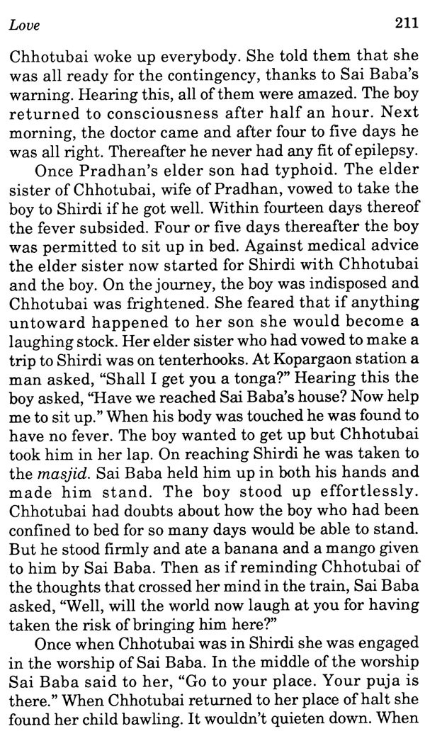 At the end of our marathon discussions, he placed in my hands as Sai-prasad, a copy of the book in Gujarati on Sai Baba, authored by him, which had run into six editions by 1966 since its first publication in 1946. My translation of the book into Marathi was published in 1982.