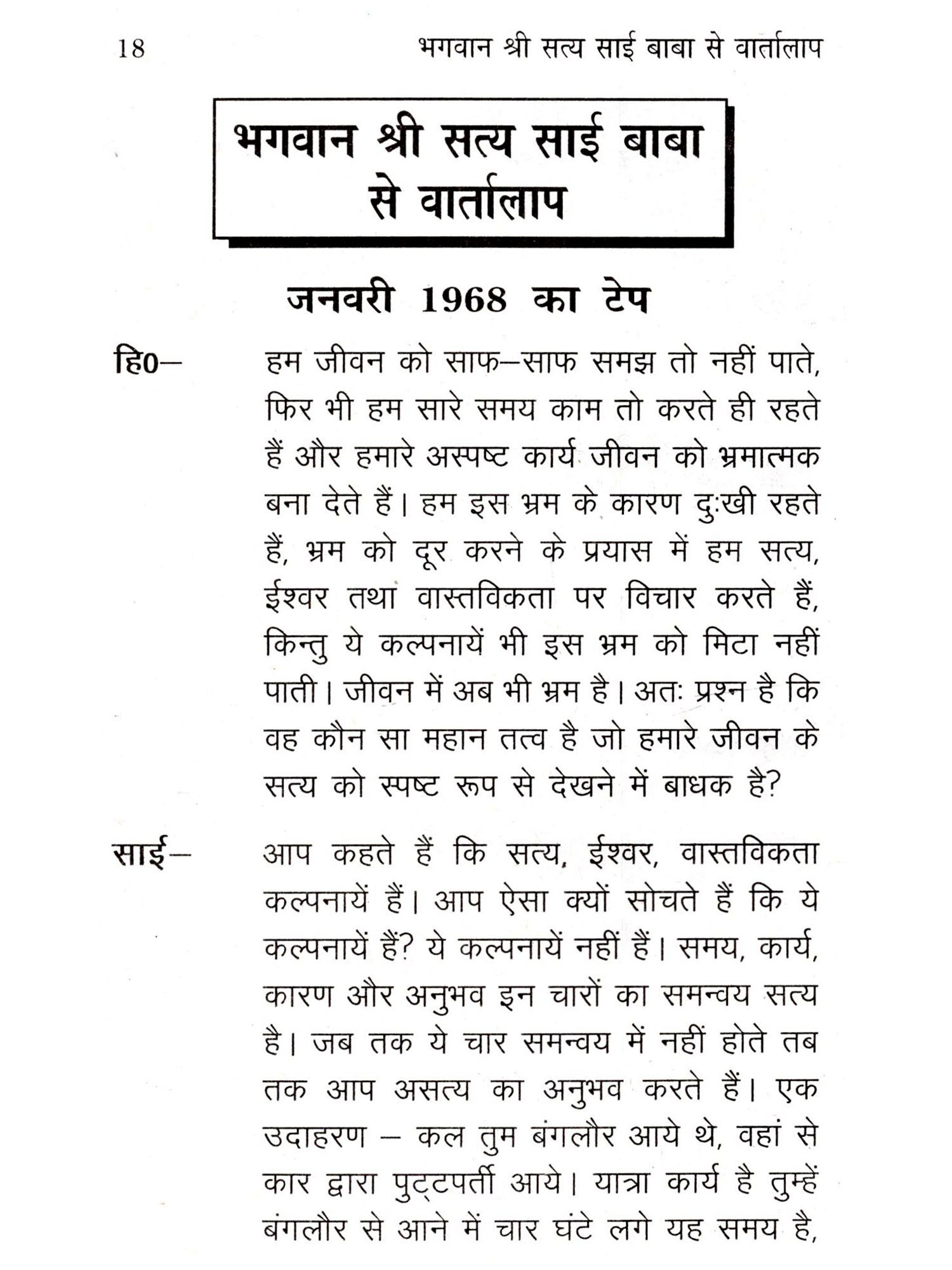 श्री सत्य साई बाबा से वार्तालाप: Shri Sathya Sai Baba Se Vartalap