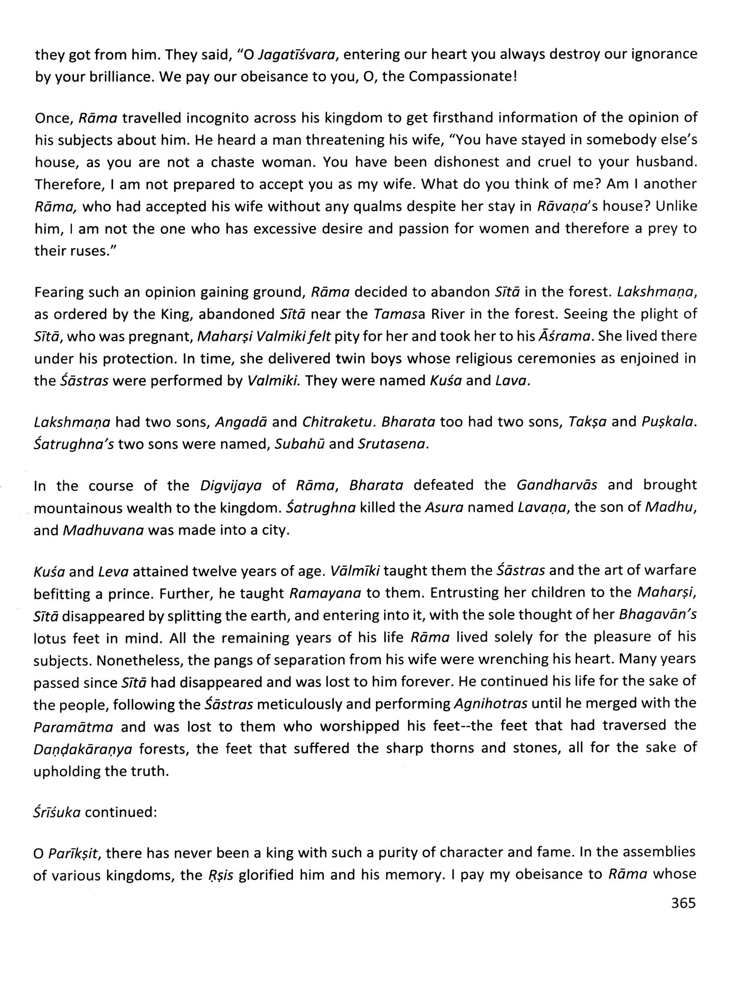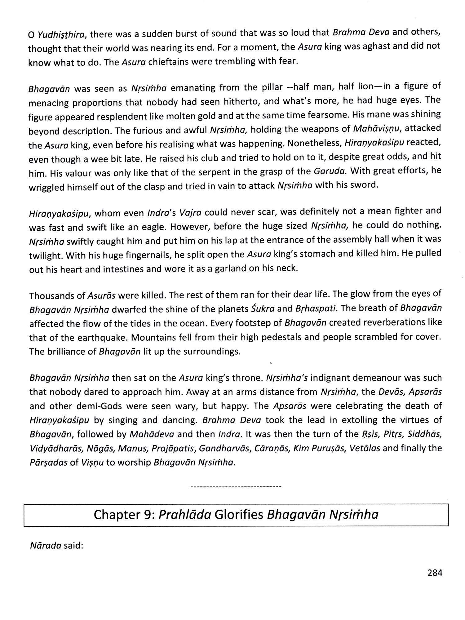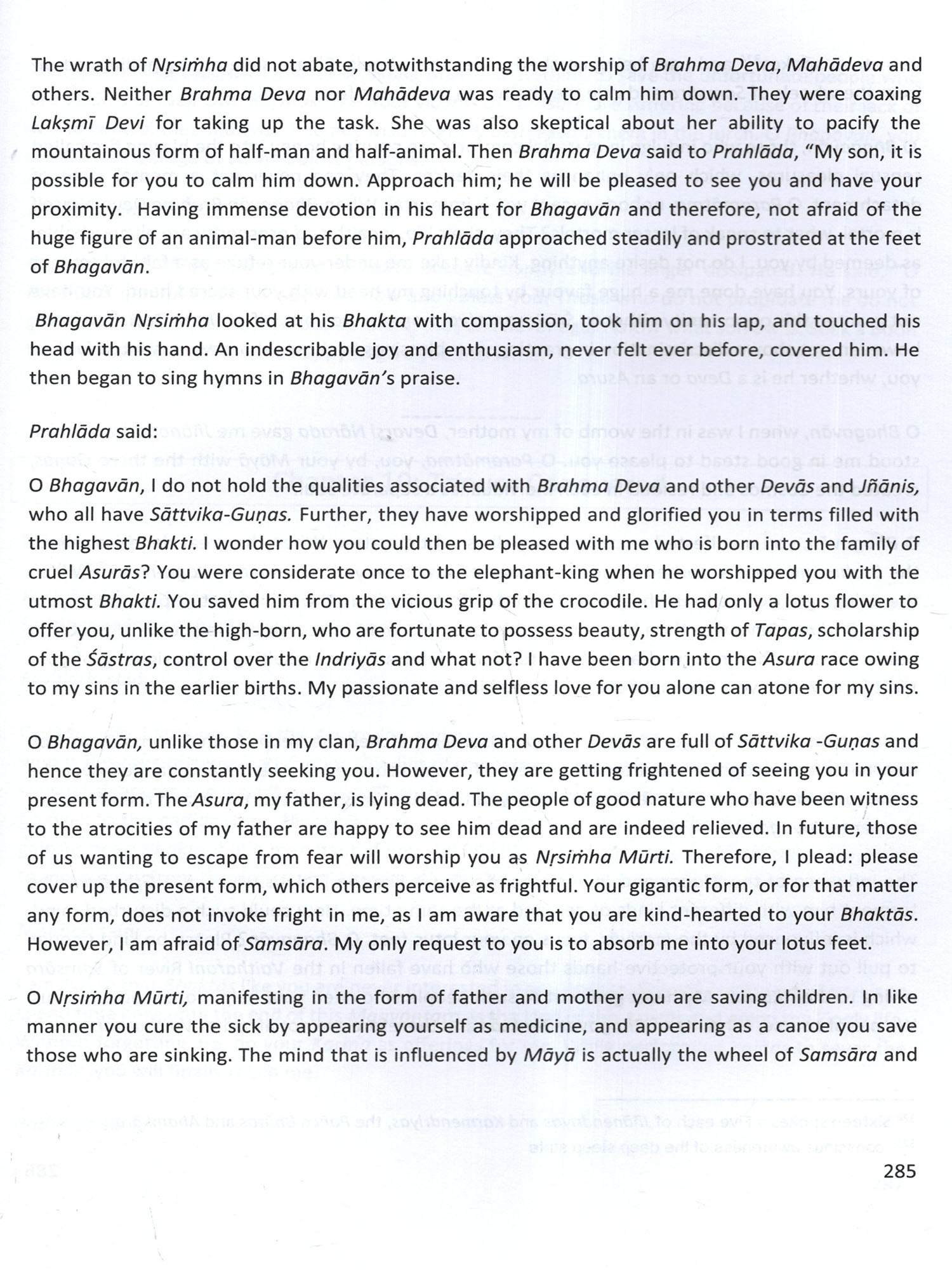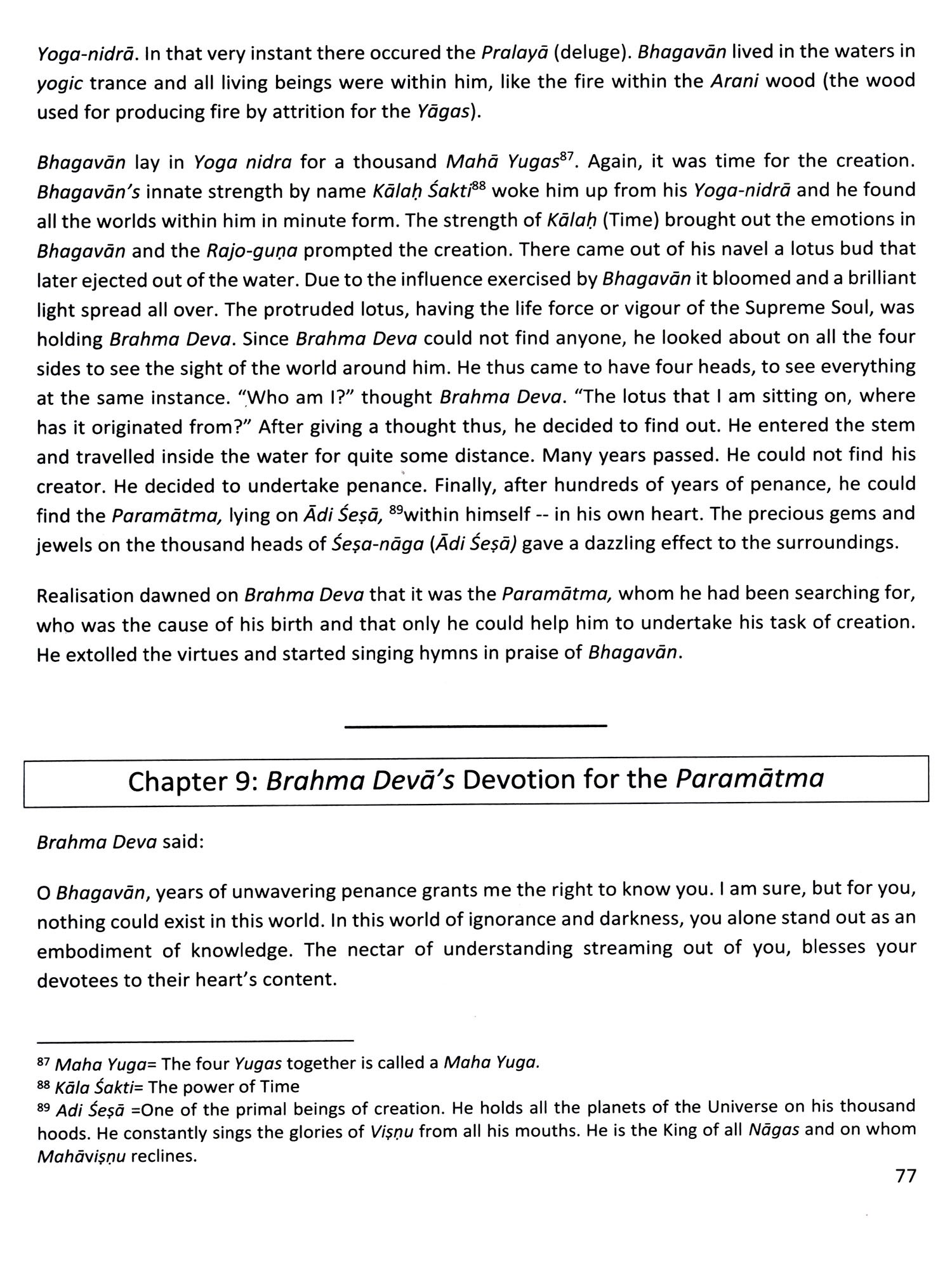 If not in schools, the parents are duty bound to instill spiritual values in their children at home, for which they themselves must be aware of the richness of values as taught in the Puranas. The awareness of the gems of advice enunciated in the religious texts is found wanting in them-a lack of understanding of the Hindu Purands Unfortunately, the parents and children who have not mastered Sanskrit/regional languages, find it difficult to understand the Puranas, which are mostly written in Sanskrit/ Hindi or regional languages. Having completed their education in English-medium schools they may not evince much interest in reading these spiritual texts, which are also very voluminous. Therefore, they tend to go along with the bandwagon of atheists, who call the highly moral stories and the characters therein as myths. It is for them, who have totally not lost all the religious fabric, that I have made this effort of bringing out the Srimad Bhagavatam in a concise form.