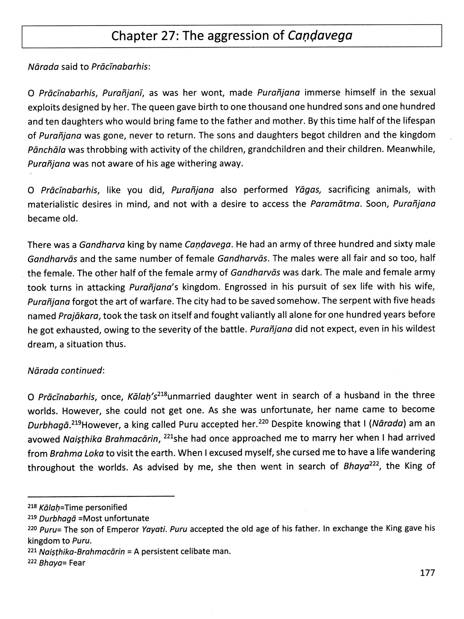 The pattern of narration is the same as in the original, with the Sutha Pauranika addressing Saunaka and his disciples of Rsis in Naimisaranyo, and the narrative is as said by Srīsuka to Pariksit.