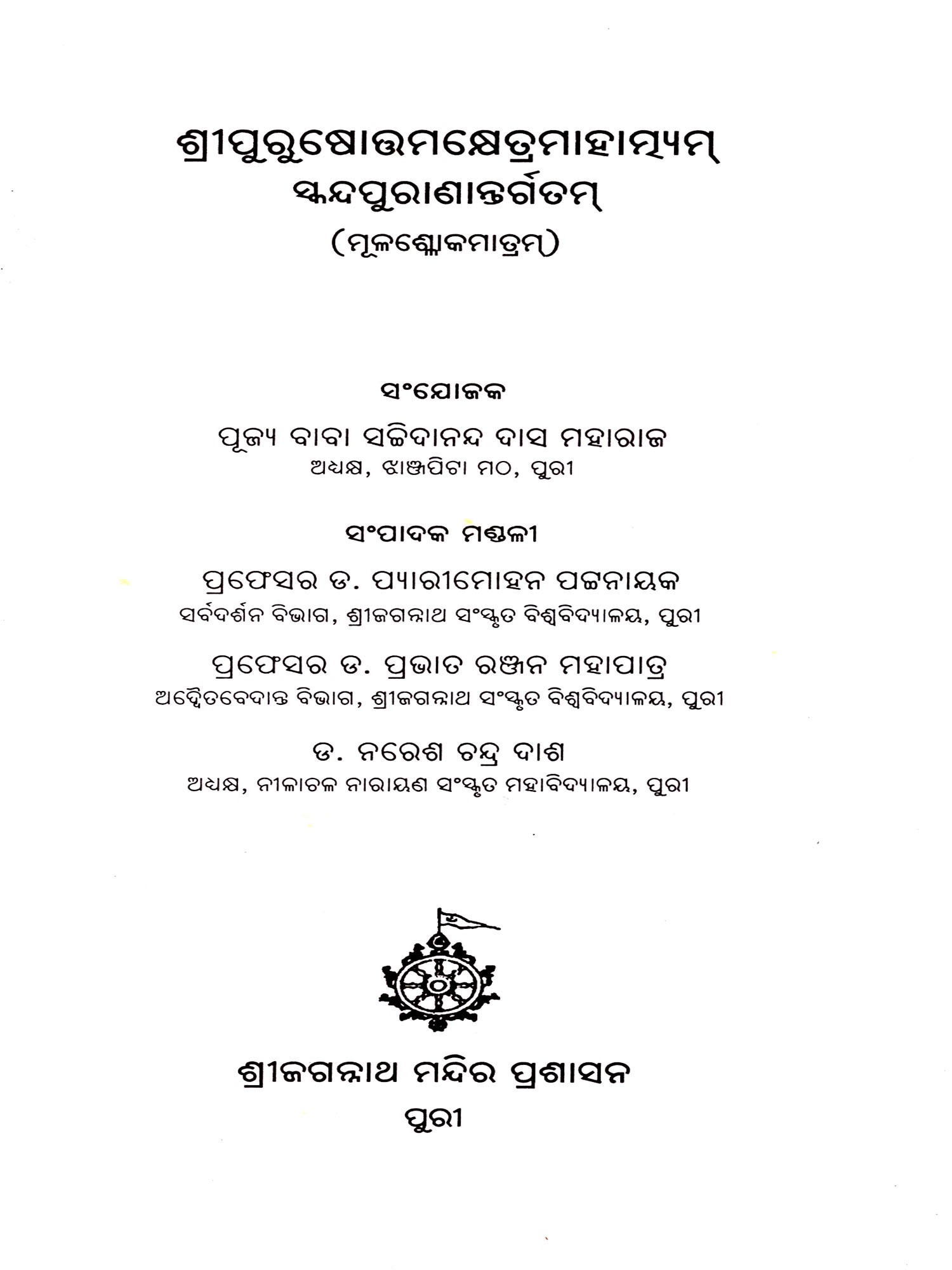 ସ୍କନ୍ଦପୁରାଣରେ ଶ୍ରୀଜଗନ୍ନାଥ: Sri Jagannath in the Skanda Purana (Oriya)