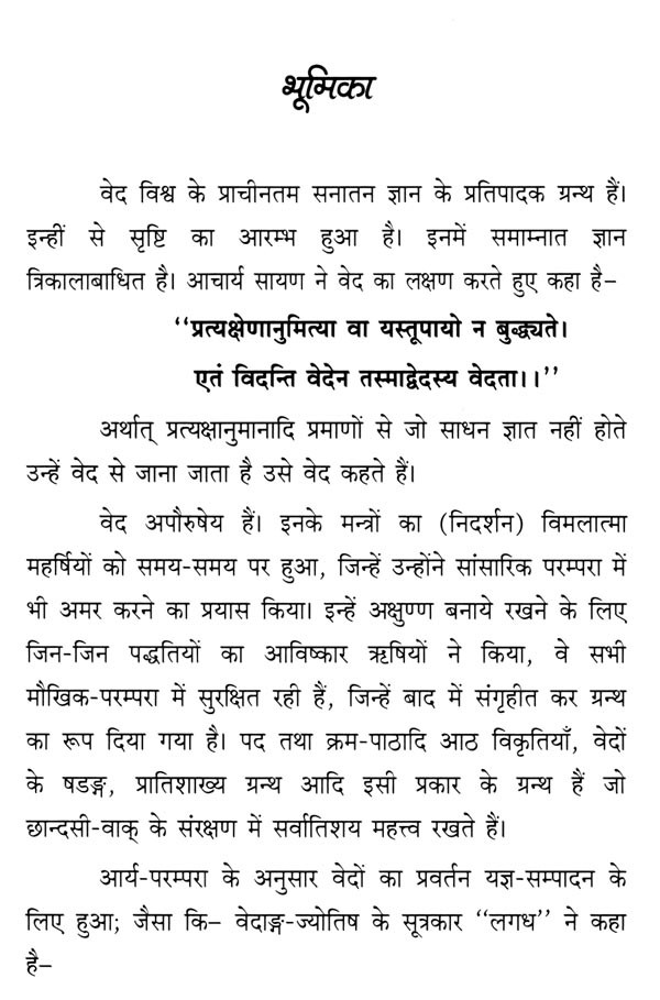प्रस्तुत ग्रन्थ का अनुवाद एवं प्रथम संस्करण मेरे गुरु एवं पितामह वेदमूर्ति आचार्य जगन्नाथ त्रिपाठी जी (पूर्व आचार्य, वेद विभाग, का.हि.वि.वि.) द्वारा विक्रम संवत् २०४१, ०३ मार्च, १९८५ में संस्कृतविद्या धर्मविज्ञान संकाय, काशी हिन्दू विश्वविद्यालय से प्रकाशित हुई थी, परन्तु किन्हीं कारणों से अल्प प्रतियाँ ही प्रकाशित होकर लोगों के समक्ष ही पहुँच पाई थी। यह पुस्तक वेदाध्ययन एवं अध्यापन हेतु परम उपादेय है। इसलिए इस पुस्तक का द्वितीय मुद्रण-प्रकाशन करना छात्रों एवं अध्येताओं के लिए परम आवश्यक था। प्रस्तुत ग्रन्थ पर कुछ एक विद्वानों के अनुवाद प्राप्त होते हैं, परन्तु यह प्रकाशन अनेक दृष्टियों से शोध अध्येताओं के गूढ़तम गुत्थियों को सुलझानें की दृष्टि से सहायक सिद्ध होगा।