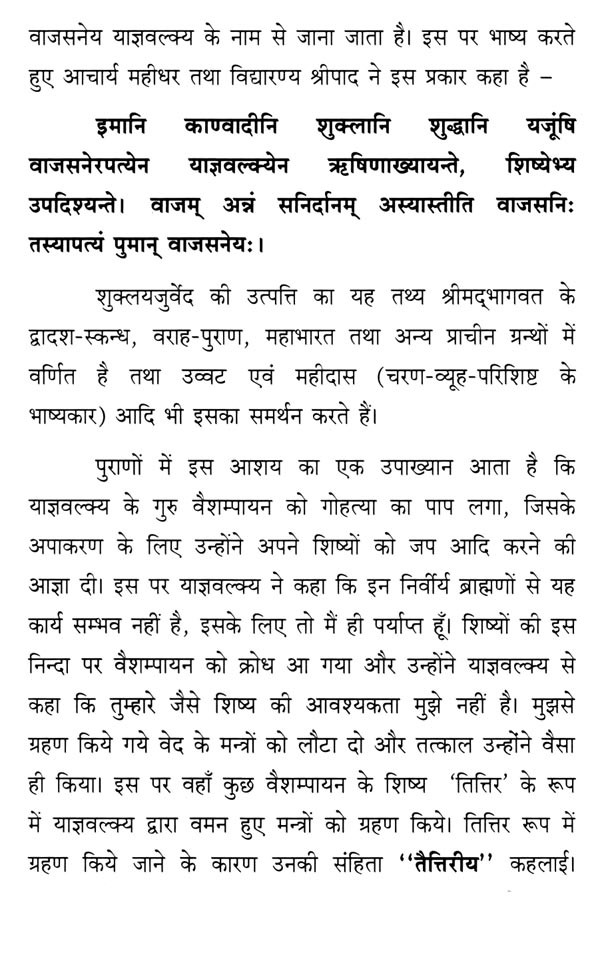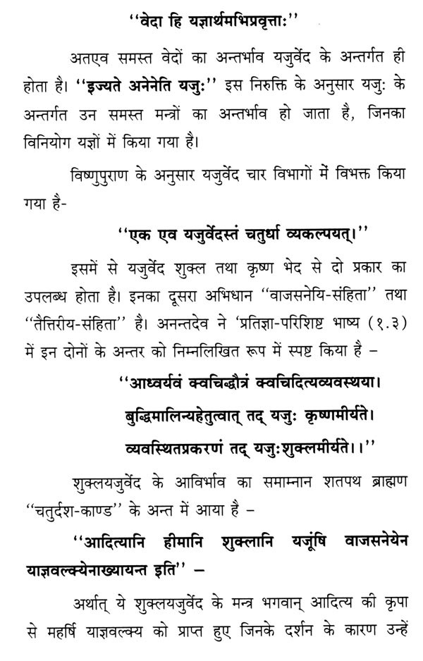 'वेदोऽखिलो धर्ममूलम्' वेद समस्त ज्ञान-विज्ञान तथा समस्त धर्म का मूल शास्त्र है। इसी से समस्त ज्ञान-विज्ञान के चिन्तन का स्फुरण एवं पल्लवन हुआ है। ""मंत्रब्राह्मणर्योवेदनामधेयम्"" मंत्र एवं ब्राह्मण साहित्य वेद पद से जाना जाता है। छः वेदाङ्गों में शिक्षा वेदाङ्ग वेद पुरुष के नासिका के रूप में परिगणित होता है। इस वेदाङ्ग के अन्तर्गत वेदों के समस्त शिक्षा जिसमें स्वर संस्कार तथा वेद अध्ययन के कुछ विशिष्ट नियमों का प्रतिपादन किया गया है। प्रस्तुत 'शुक्लयजुर्वेदीय प्रातिशाख्यम्"" आठ अध्यायों में विभक्त है। इस ग्रन्थ की रचना सूत्रों में हुई है। ग्रन्थ की शैली, विषय-वस्तु का विन्यास आदि इस तथ्य की ओर संकेत करते हैं कि यह उत्तर-सूत्रकाल की रचना है, किन्तु निरुक्तकार द्वारा स्मृत होने से ईस्वी अष्ट-शतक से प्राचीन होना चाहिये। इस ग्रन्थ में आठ अध्यायों के सूत्रों में क्रमशः १६९,६५, १५१, १९८, ४६, ३१, १२, तथा ६२ सूत्र हैं। आठवें अध्याय में १३ पंक्तियाँ हैं, जो अनुष्टप् छन्द से अभिन्न हैं। ग्रन्थ का प्रतिपाद्य प्रथम अध्याय के प्रथम सूत्र में ही वर्णित है- ""स्वरसंस्कारयोश्छन्दसि नियमः"" छन्दोभाषा के स्वर (उदात्त, अनुदात्त, स्वरित एवं प्रचय) तथा संस्कार (लोप, आगम, वर्ण-विकार एवं प्रकृतिभाव) का नियम (इस शास्त्र का प्रतिपाद्य है।)