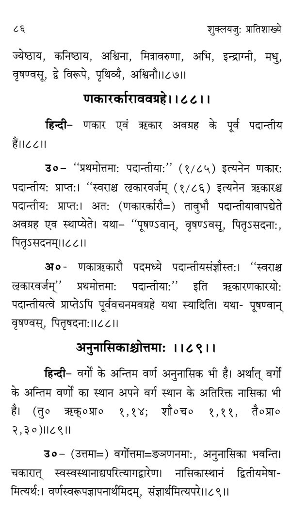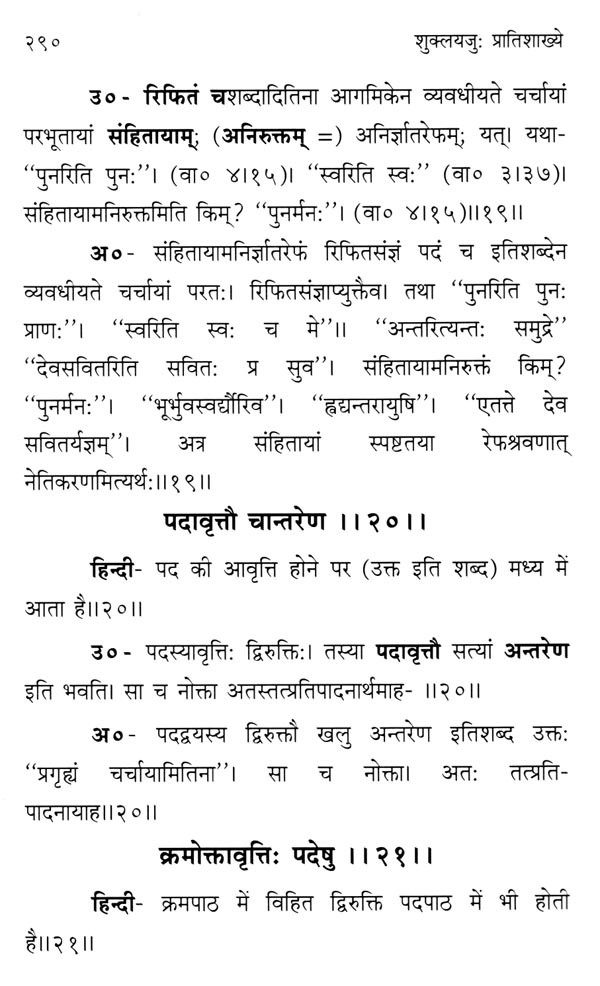 शुक्लयजुर्वेद-प्रातिशाख्यम् उव्वटानन्तभट्टप्रणीतभाष्यद्वयसहितम् (हिन्दीभाषानुवाद - सहितम् ): Shukla Yajurveda-Pratishakhya with Two Commentaries by Uvvatananantabhatta (With Hindi Translation)