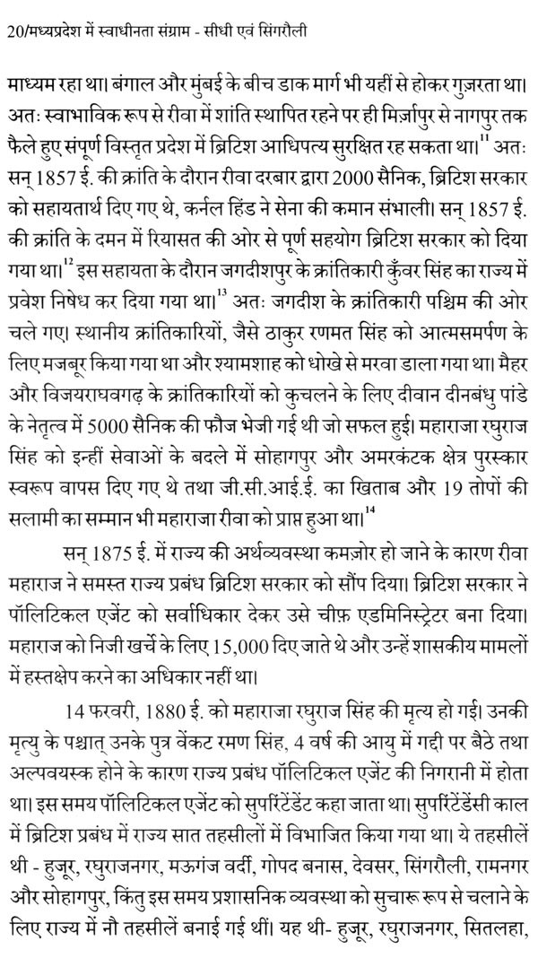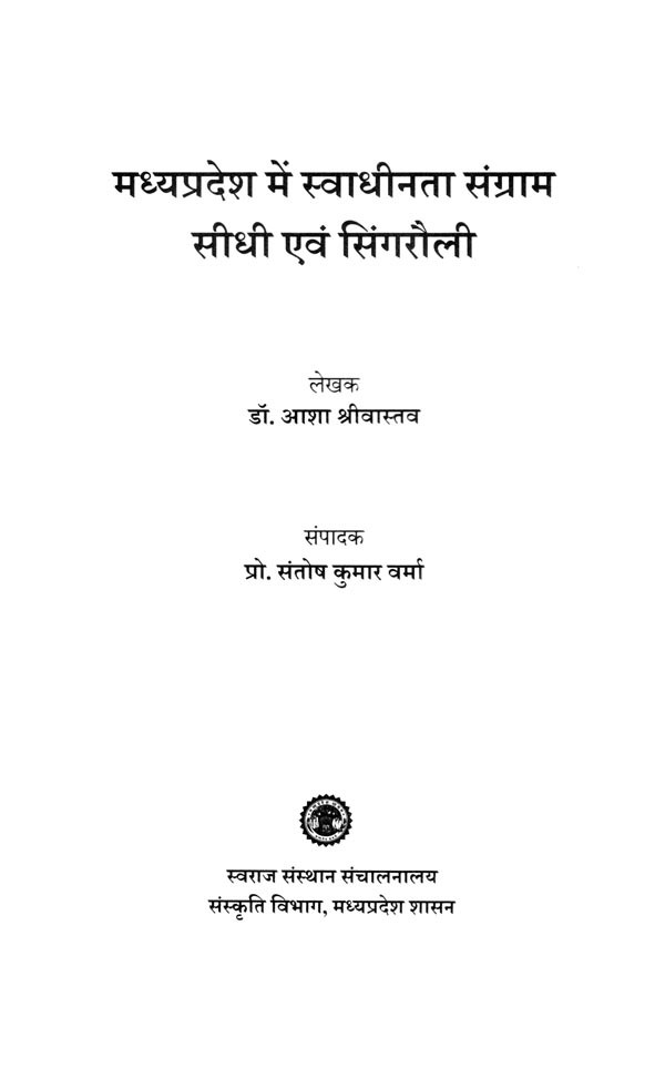 बघेलखंड क्षेत्र में हुई स्वाधीनता संग्राम की घटनाओं, गतिविधियों, महत्वपूर्ण तथ्यों और स्वतंत्रता सेनानियों के बहुमूल्य योगदान को रेखांकित करने के लिए सीधी सिंगरौली जिले के स्वाधीनता संग्राम के लेखन का दायित्व स्वराज संस्थान संचालनालय द्वारा मुझे प्रदान किया गया इसके लिए मैं स्वराज संस्थान का आभार व्यक्त करती हूँ। इस लेखन कार्य में प्रत्यक्ष एवं अप्रत्यक्ष रूप से सहयोग प्रदान करने के लिए सभी का धन्यवाद ज्ञापित करती हूँ।