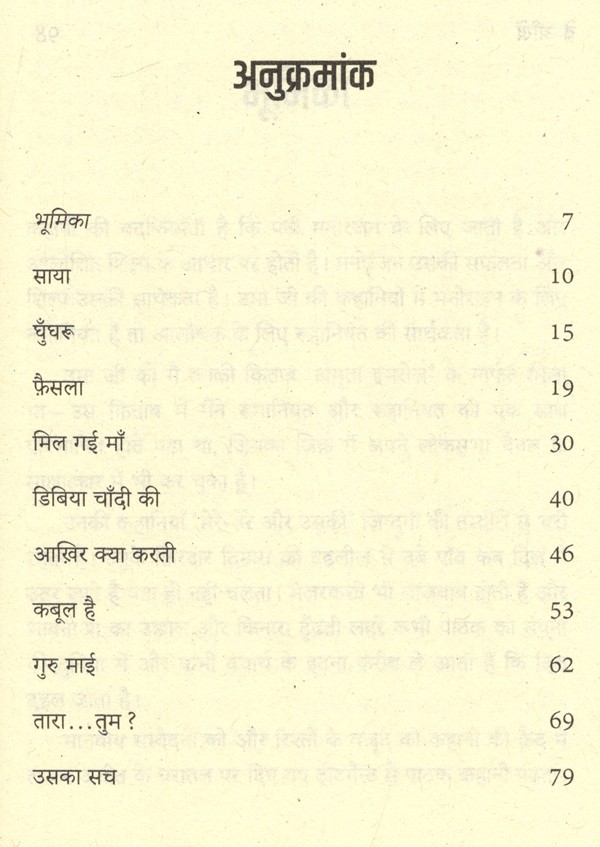 डॉ. उमा निलोक मानवीय भावनाओं की कुशल चितेरी हैं। कविता हो या कहानी या फिर पटकथा या गीत, वे किसी कोमल मनोभाव को पकड़ती हैं और अपनी दक्ष लेखनी द्वारा उसे एक मुकम्मल रचना में तब्दील कर देती हैं - एक ऐसी रचना, जो दिल को छू लेती है और सोचने पर विवश कर देती है। इस संग्रह में संकलित उनकी कहानियाँ इसी तरह की मर्मस्पर्शी कहानियाँ हैं।