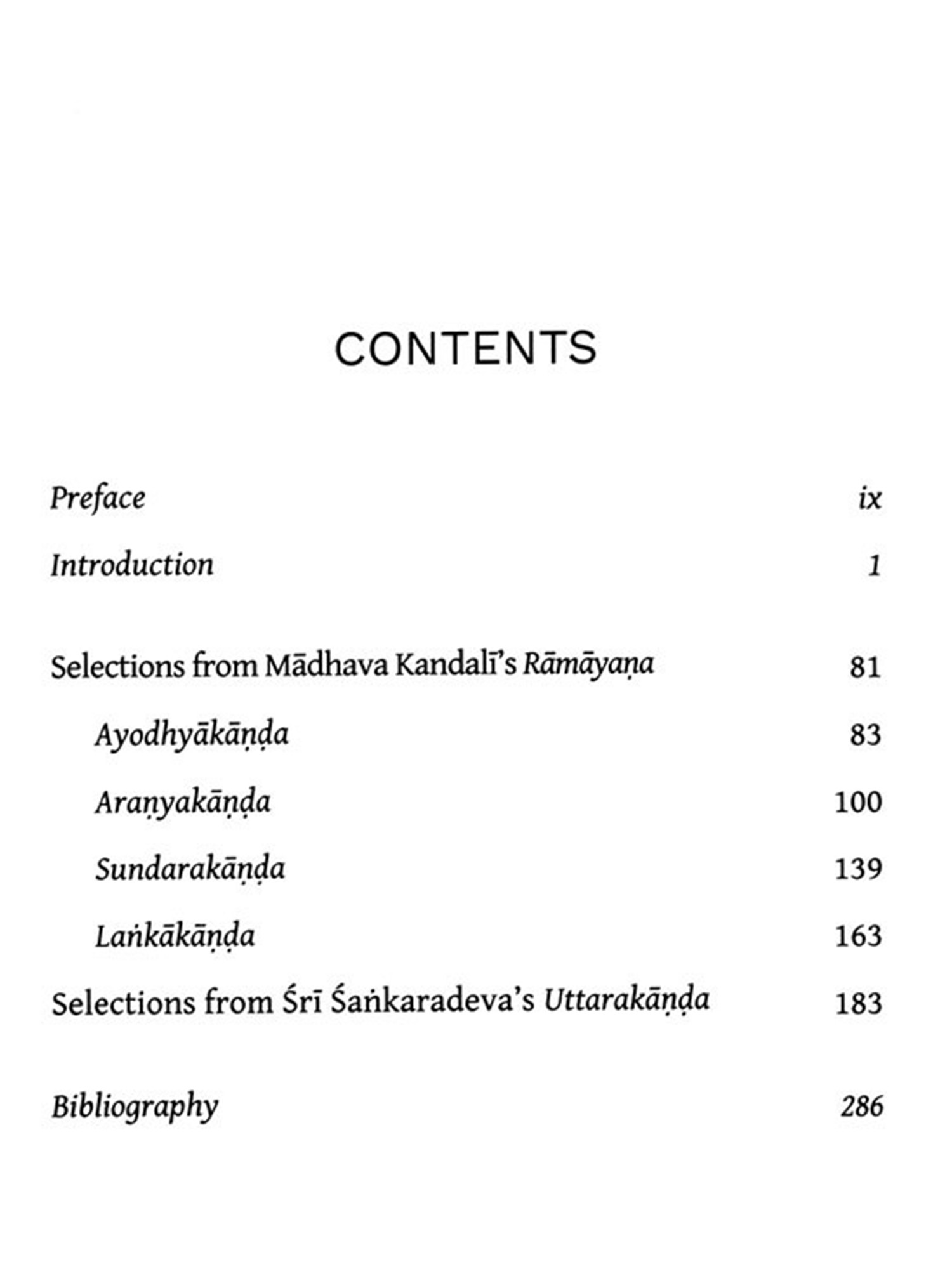 The Ramayana tradition that has existed in Assam from around the fourteenth century or possibly even earlier has not received the same kind of scholarly attention as other South Asian traditions centred round the epic. In recent decades, several studies have focused specifically on the possibility of re-reading or questioning the tradition from diverse perspectives. These studies, however, contain very few references to the Ramayana or 'Ramakatha' tradition in north-eastern India. It is in this context that I have written and translated this work on the Rāmāyaņa of Madhava Kandali and the Uttarakāņda by Śańkaradeva. My attempt in this present work has been to bring into focus the socio-political, religious and gender contexts that might have existed in north-east India in the fourteenth and fifteenth centuries and that might have inspired the vernacular poets to represent the characters and events in the epic in a certain manner.