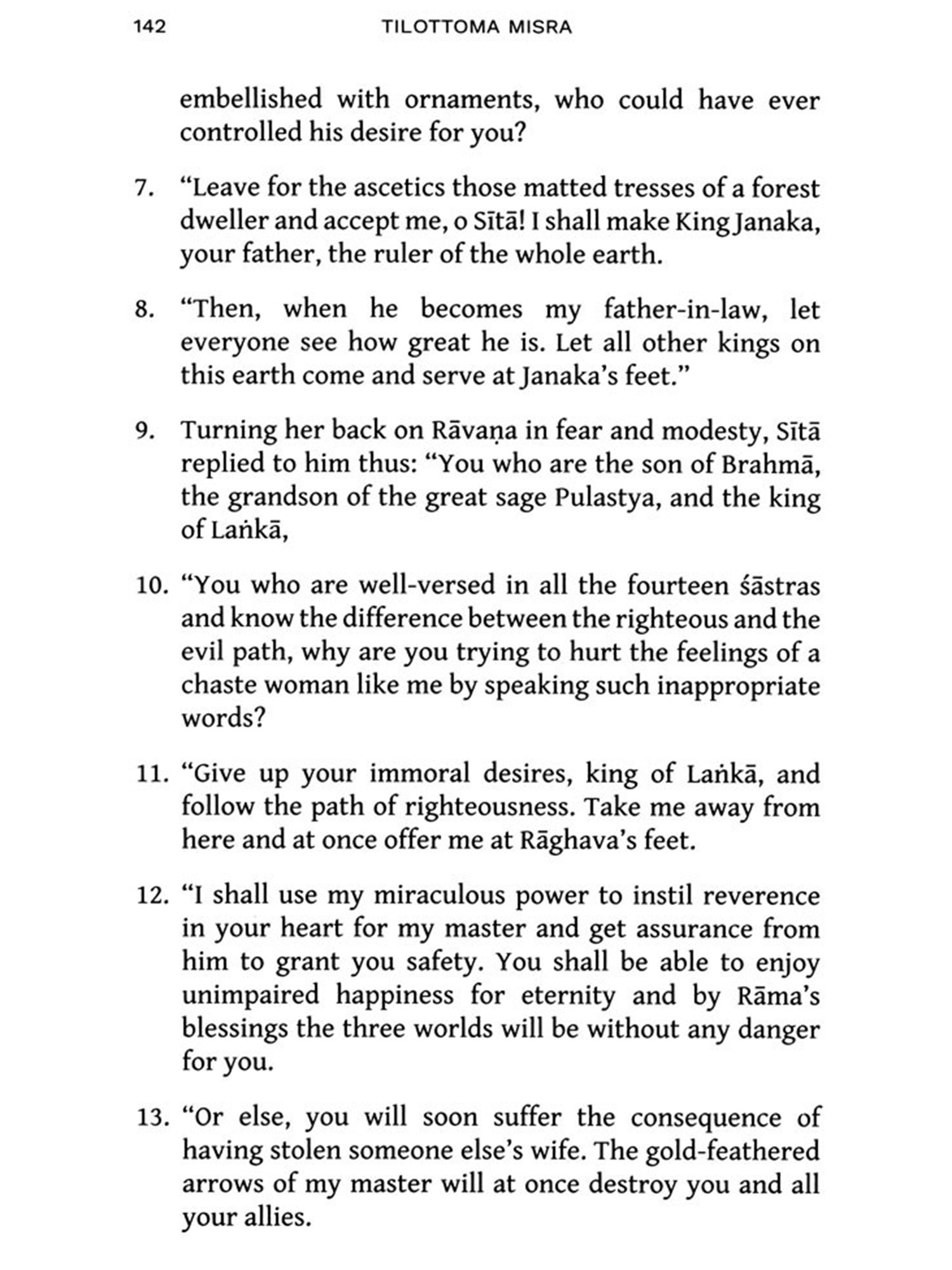 Sita's Voice in the Assamese Ramayana is a translation of select verses from the Assamese Saptakända Ramayana of Madhava Kandali, Sankaradeva and Madhavdeva, written between the 14-15 centuries CE. This vernacular rendition of the Valmiki Ramayana has been translated with a scholarly introduction by Tilottoma Misra. The selected verses represent a distinctive creative rendition of the Valmiki text from the region of Assam by adding new emotional and philosophic dimensions to it. Especially in the Uttarakända ascribed to Sankaradeva, Sita's voice acquires a unique quality in her final rejection of Rama thereby expressing her ultimate disillusionment with him, the much-acclaimed paragon of all virtues. "Others may praise bim for all bis deeds. But Death incarnate is Rama for me. "I have never beard of a husband more unkind than be. O how can I look upon him again with love and pride?"