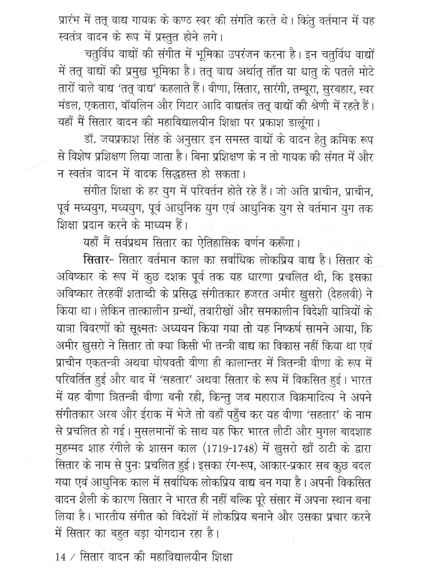 सितार वादन की महाविद्यालयीन शिक्षा: Sitaar Vaadan Kee Mahavidyalayeen Shiksha