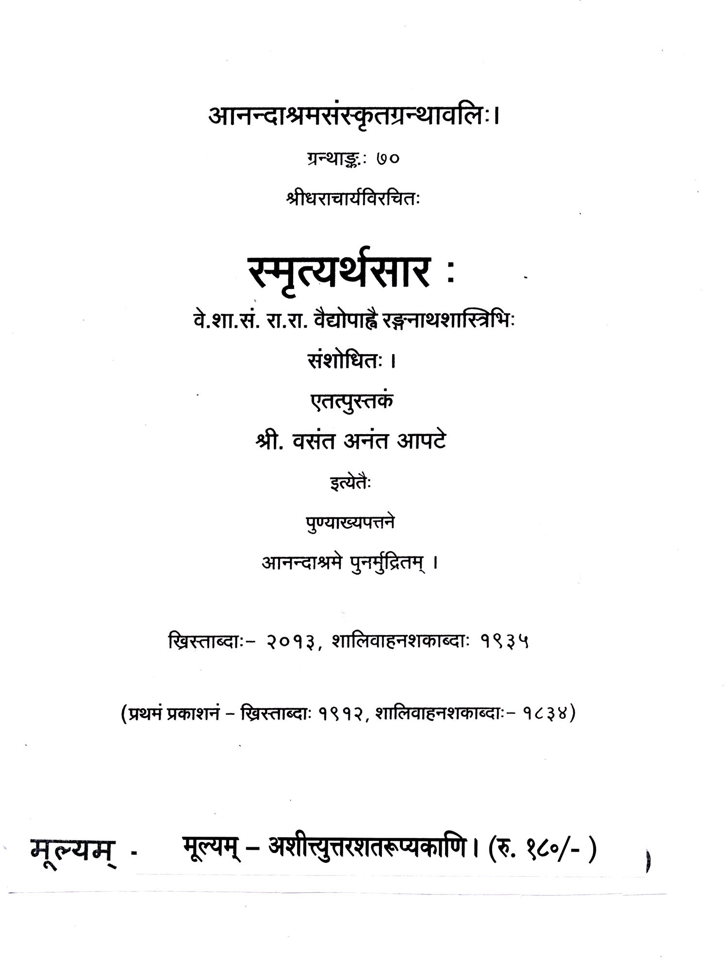 स्मृत्यर्थसार: Smrityarthasara