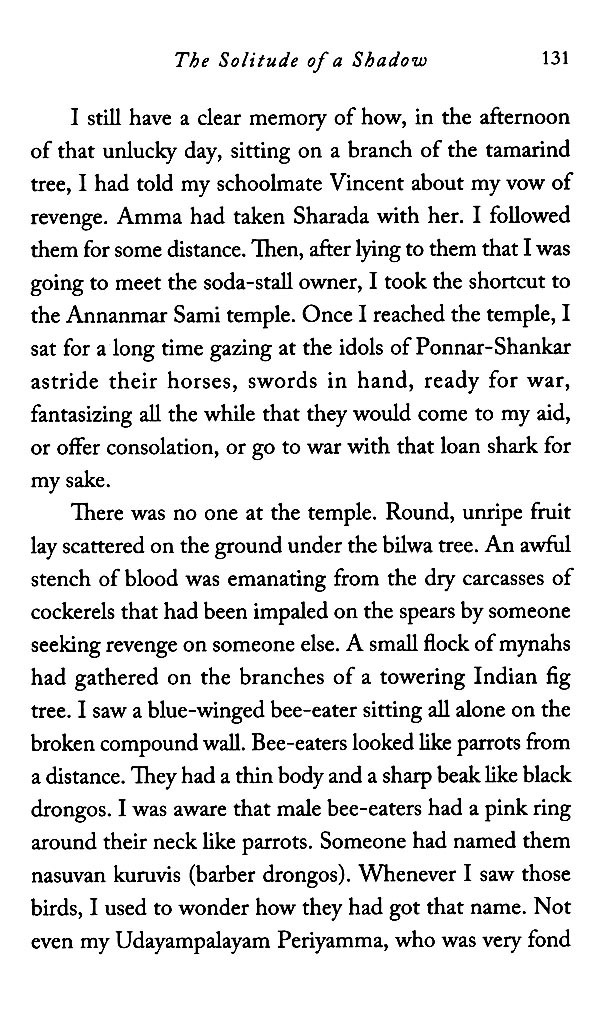 Superbly translated by N. Kalyan Raman, The Solitude of a Shadow shows us how treacherous and illusory the hunger for revenge can become - with unavoidable tragic consequences.