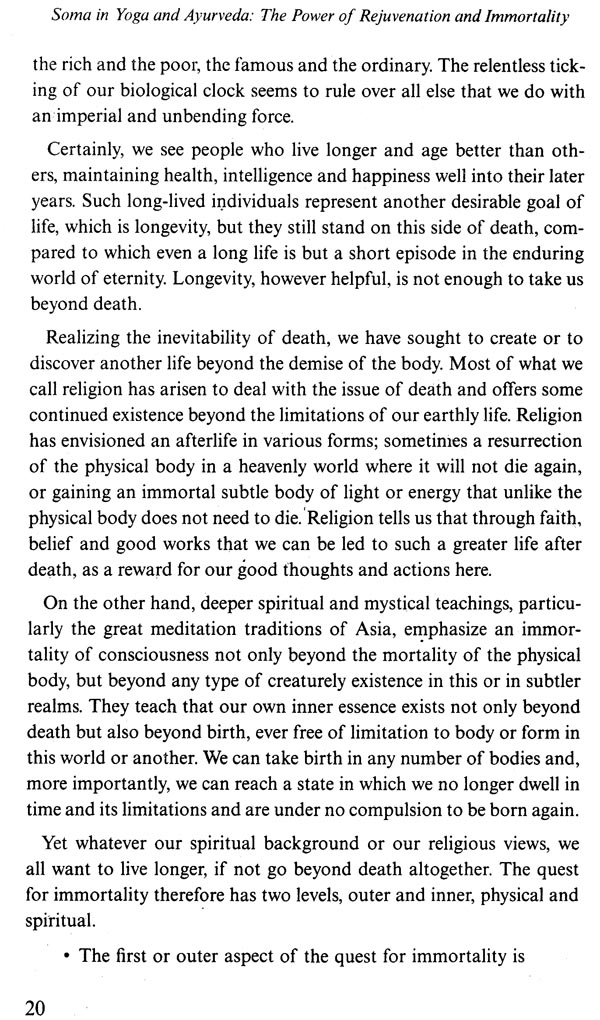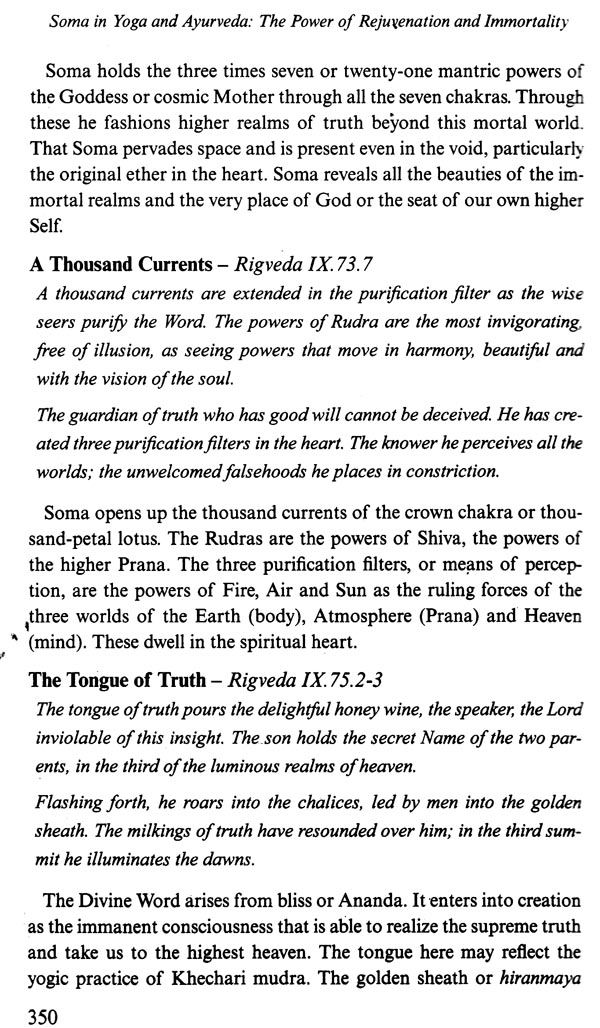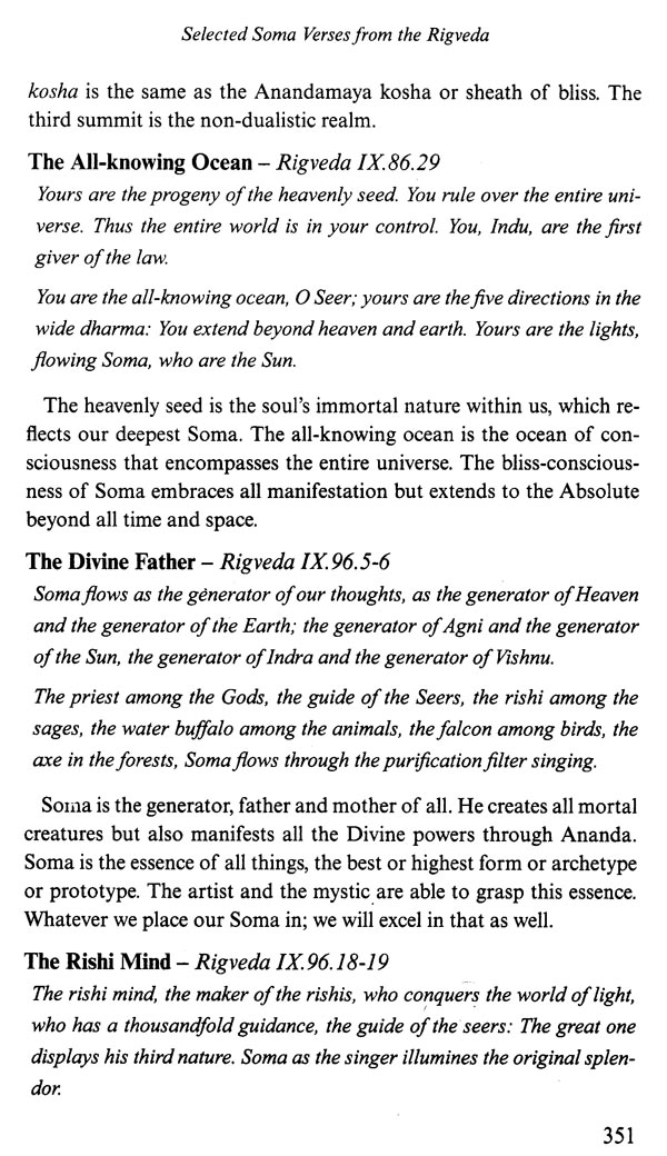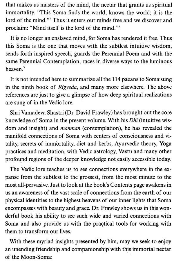 What is the secret of Soma, the legendary mystic drink of immortality, first lauded by India's ancient Vedic seers? Is Soma a single plant, a type of plants, a way of healing, a special intoxicant, or an inner elixir produced by Yoga and meditation? Going back to the vision of the Vedic seers, David Frawley reveals the secret of Soma for body, mind and spirit, with its profound implications from diet and herbs to pranayama, mantra and meditation. His new analysis of Soma, reflecting forty years of study of Vedic texts, is practical, comprehensive and deeply insightful - so that you can bring the secret power of Soma into all aspects of your life and consciousness, and for the world,as a whole.