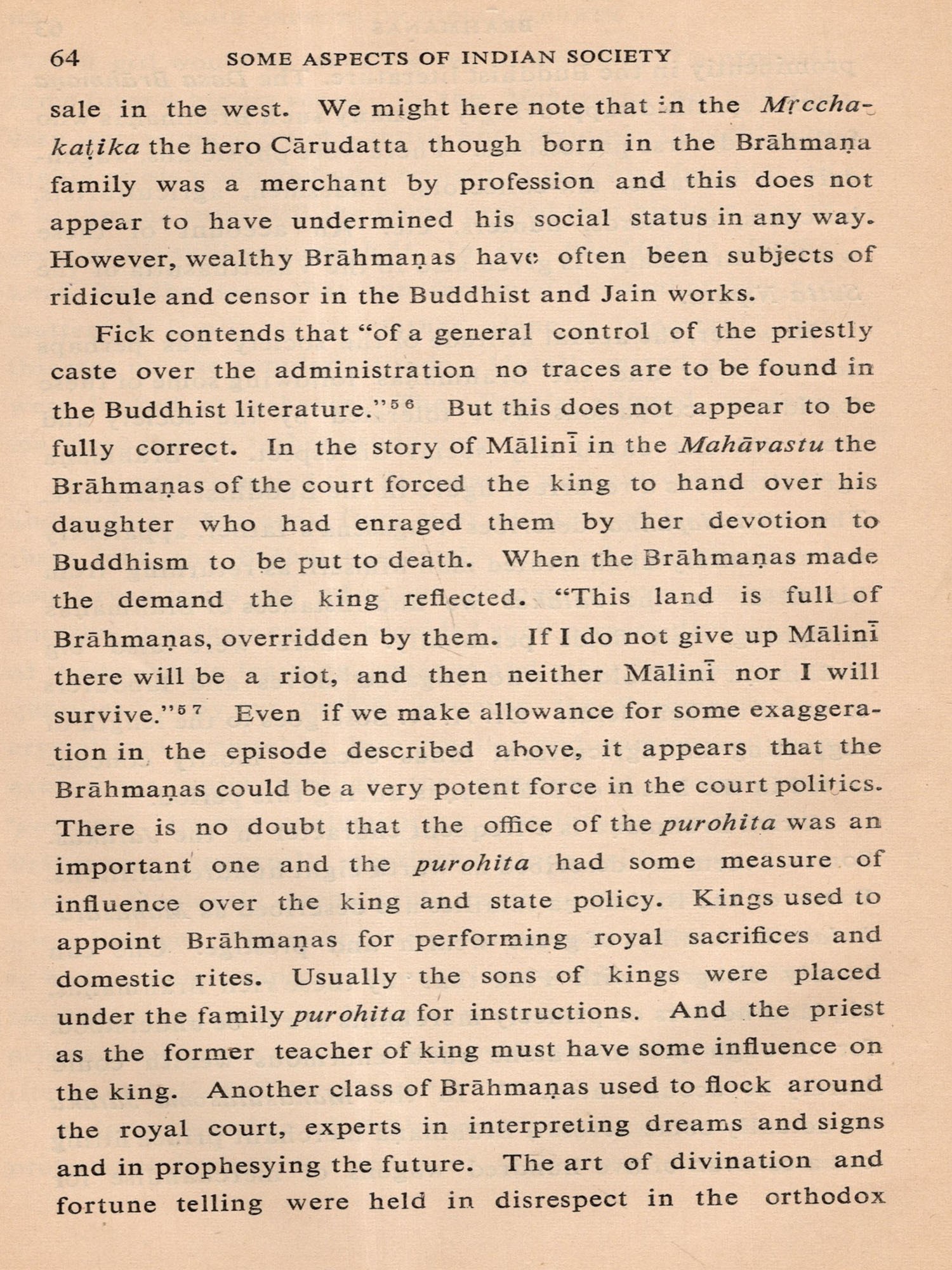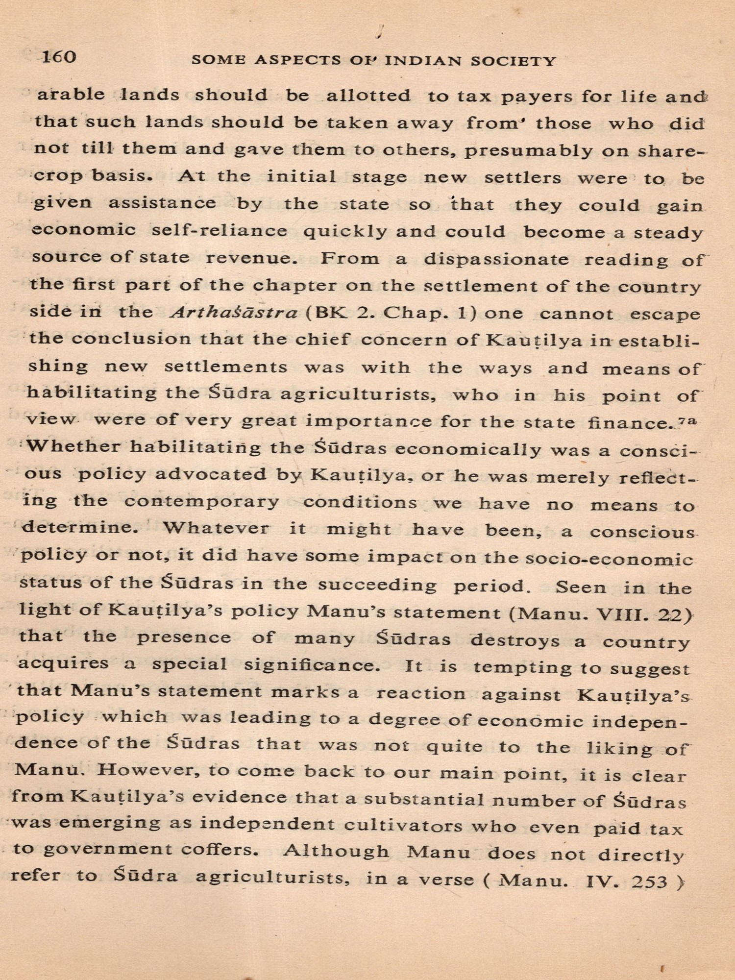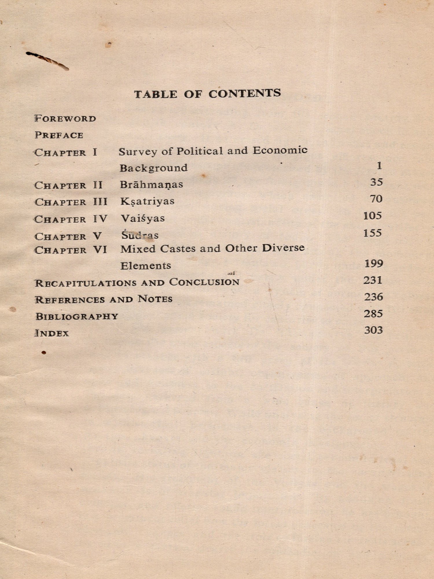 The outstanding merit of the present work lies in the fact that it reveals not only how the social structure was but also how it actually functioned in this age. The varnas, as the author has clearly perceived, were not homogeneous social classes. He has convincingly shown how each of them was being split into an upper and a lower strata under the stress of mainly the economic factor, and how this phenomenon, along with the pulls and pressures of conflict-ing and mutual interests was closely connected with the process of the formation of classes, on the basis of the possession of wealth and power, which tended to some extent to cut across the ascriptive lines of the hierarchical social system of varnas and castes.