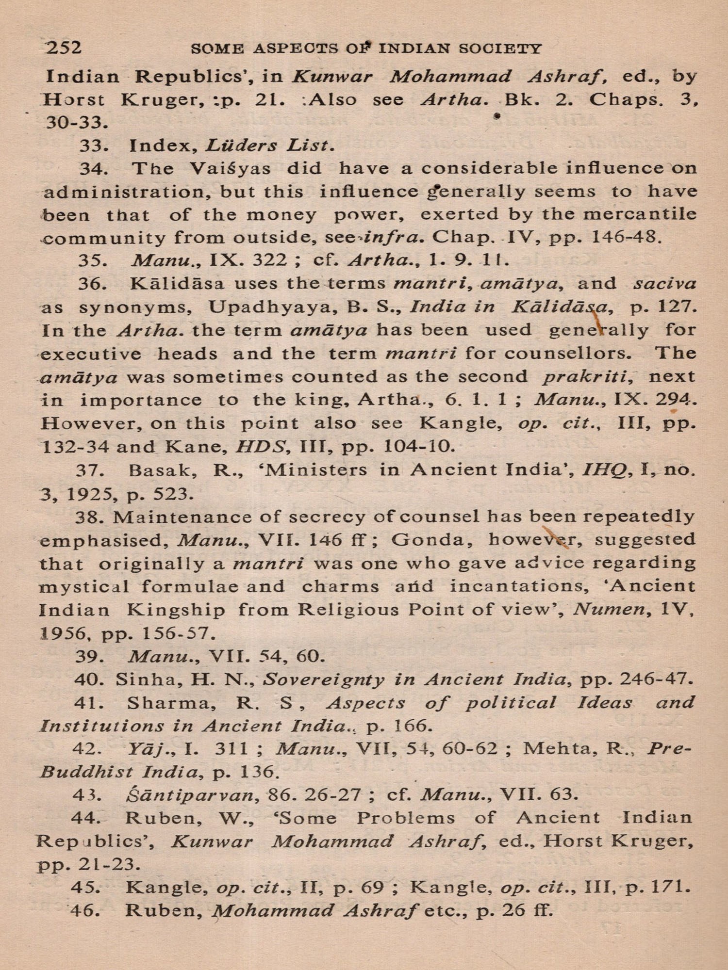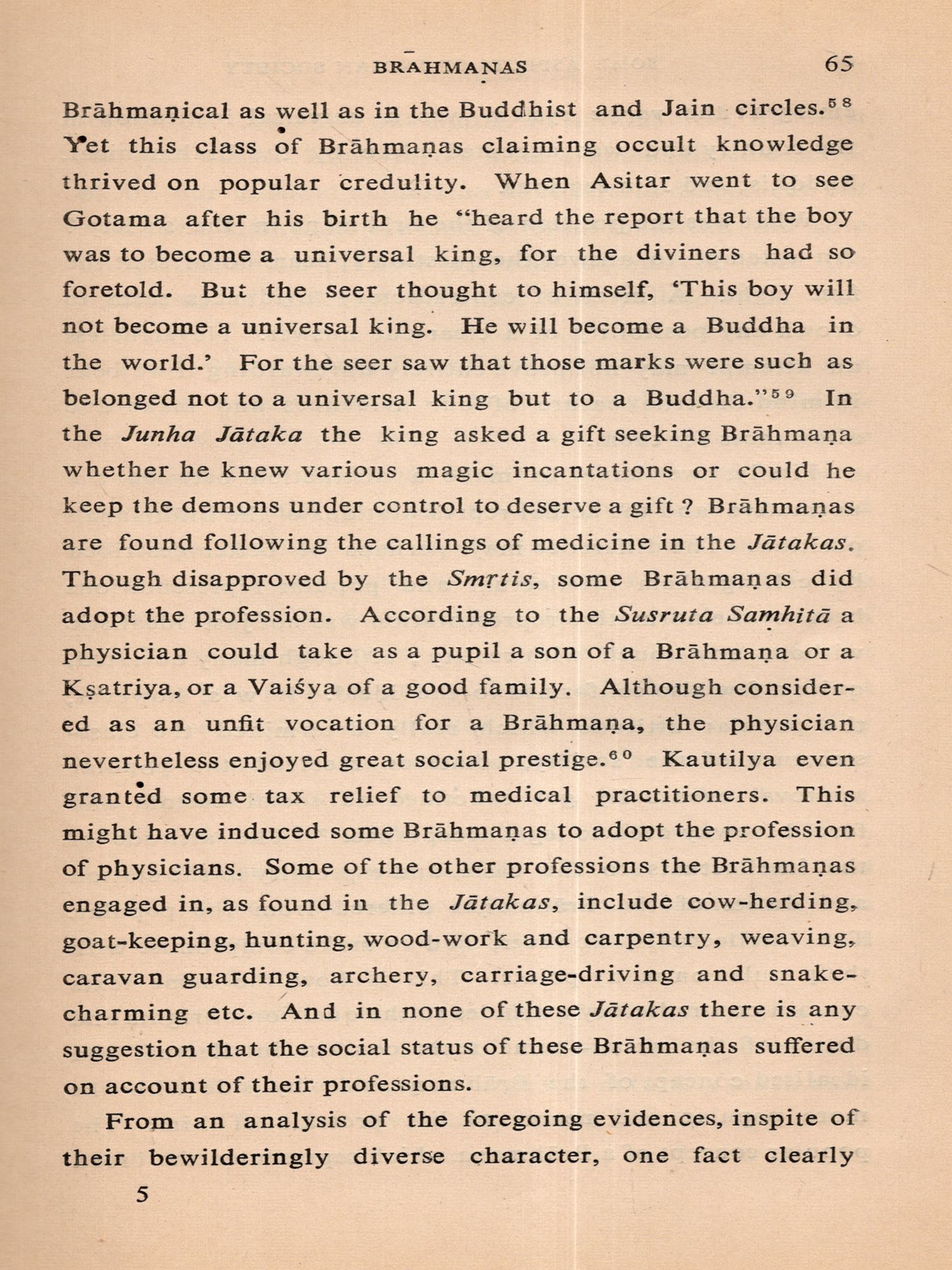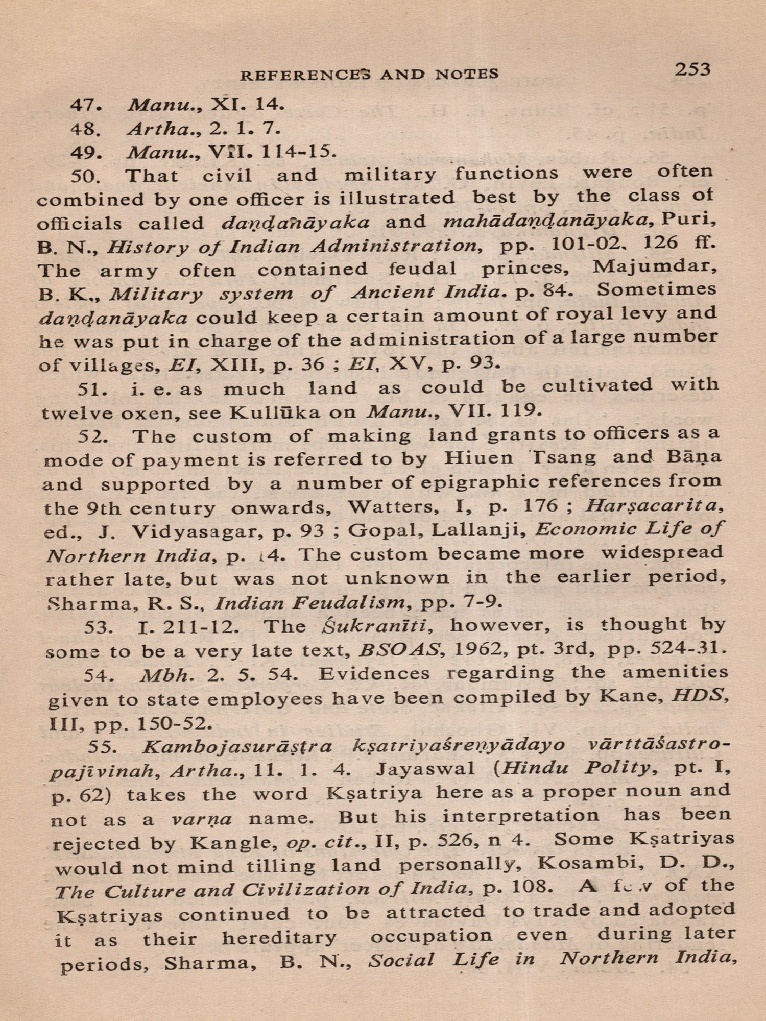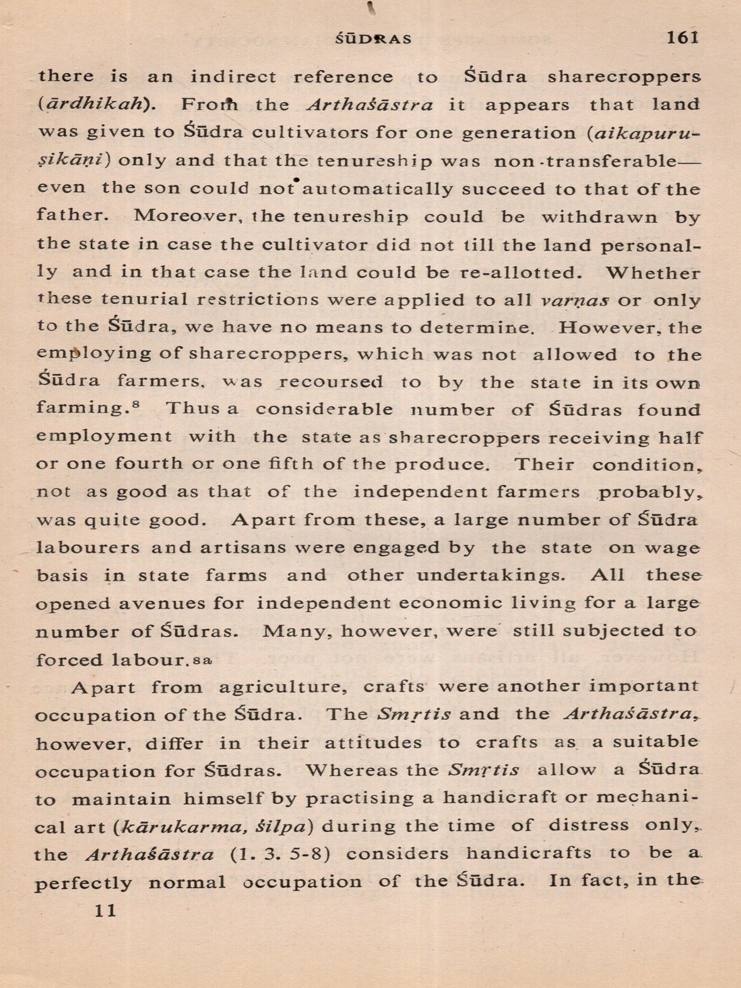 The outstanding merit of the present work lies in the fact that it reveals not only how the social structure was but also how it actually functioned in this age. The varnas, as the author has clearly perceived, were not homogeneous social classes. He has convincingly shown how each of them was being split into an upper and a lower strata under the stress of mainly the economic factor, and how this phenomenon, along with the pulls and pressures of conflict-ing and mutual interests was closely connected with the process of the formation of classes, on the basis of the possession of wealth and power, which tended to some extent to cut across the ascriptive lines of the hierarchical social system of varnas and castes.