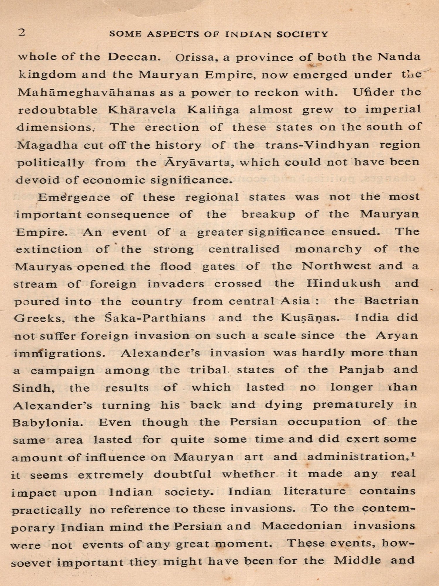 Some Aspects of Indian Society -From c. 2nd Century B. C. to 4th Century A. D. (An Old and Rare Book)