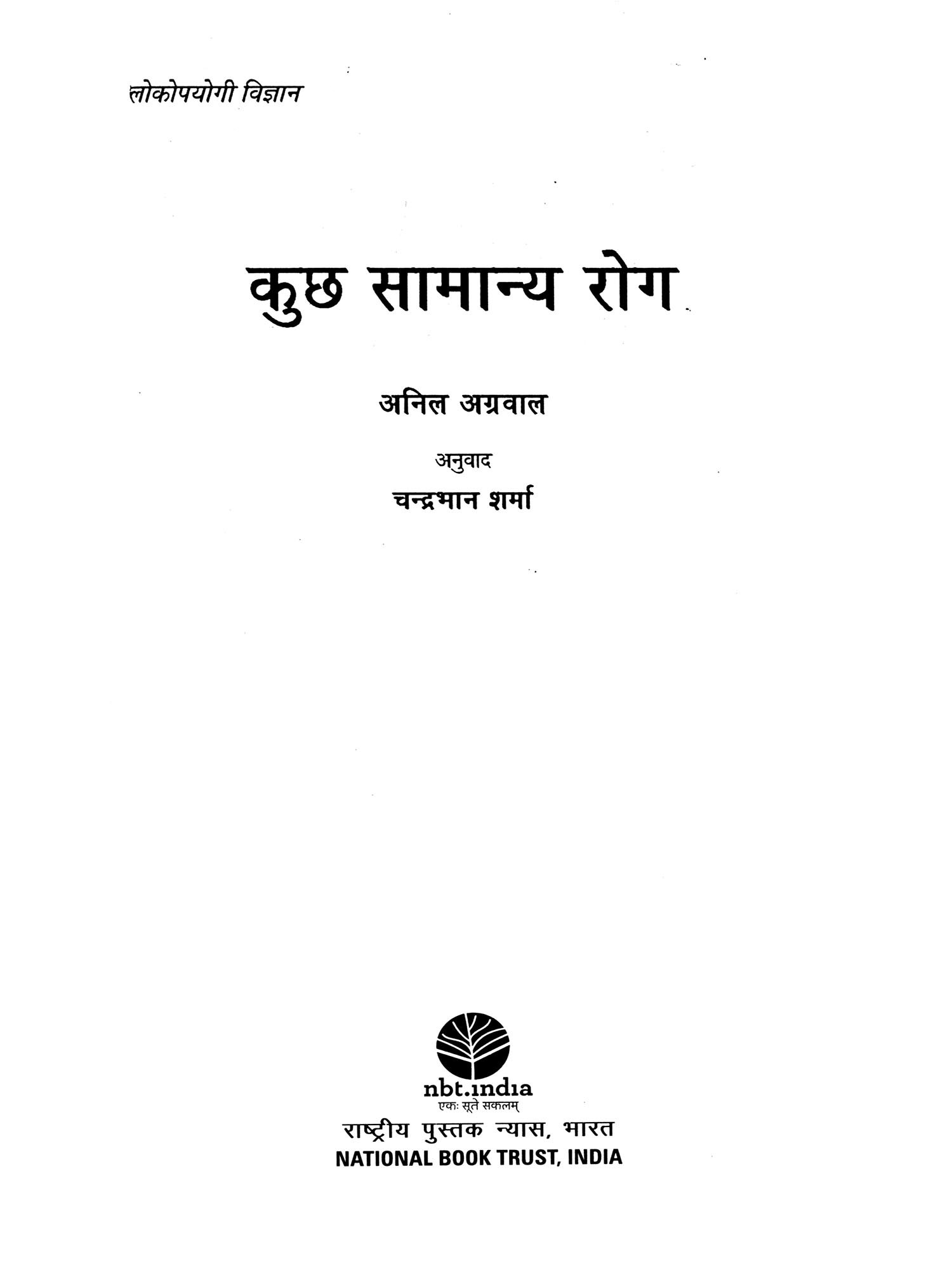 इस दृष्टि से सामान्य रोगों की थोड़ी बहुत जानकारी होना सबके लिए अत्यंत आवश्यक है। प्रस्तुत पुस्तक में कुछ सामान्य रोगों की रोचक जानकारी देकर इस लक्ष्य की पूर्ति करने का प्रयास किया गया है। इन रोगों के वारे में जानने का एक और कारण भी है। शरीर और इसकी साधारण वीमारियों का ज्ञान होना वैसा ही है जैसा अपने वाहन और उसमें होने वाली समस्याओं के बारे में जानकारी होना। यह सही है कि हम स्वयं अपने वाहन को ठीक नहीं कर सकते, परंतु इसकी कार्यप्रणाली तथा साधारण त्रुटियों का ज्ञान होने से हम उसका बुद्धिमत्ता पूर्वक उपयोग कर बार-बार होने वाली परेशानियों से काफी हद तक बच सकते हैं। साथ ही, इसमें खराबी आने की स्थिति में हम न केवल मिस्त्री को सही समस्या बता सकते हैं, बल्कि उसके द्वारा उल्लू बनाये जाने से भी बच सकते हैं।