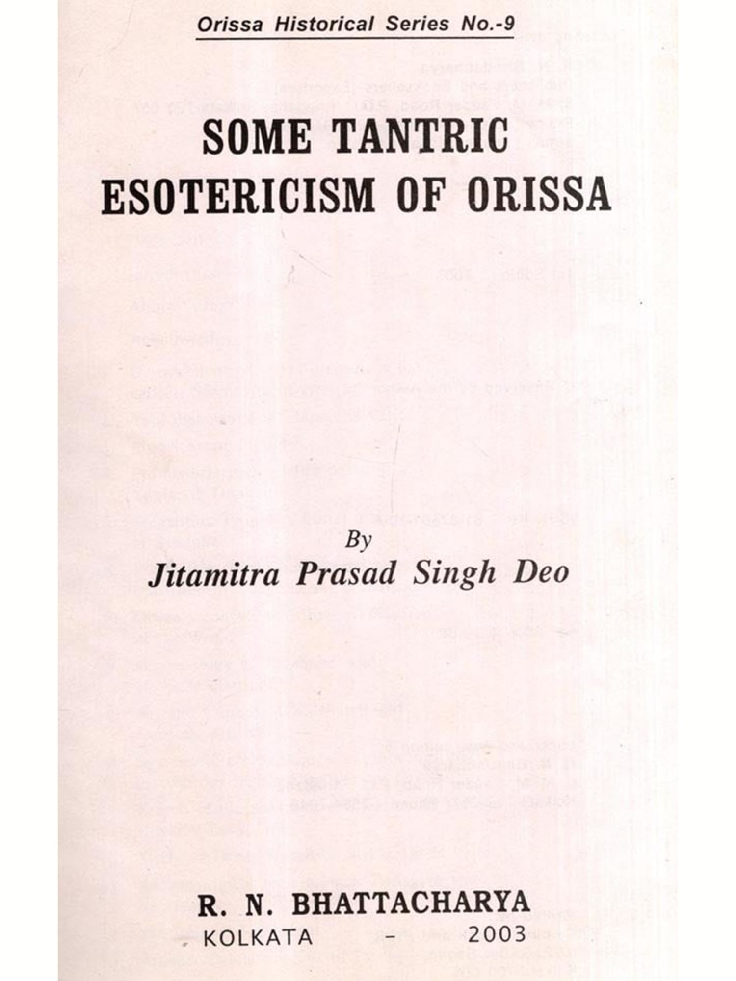 There-fore the book is named "Some Tantric Esotericism of Orissa." Author's unpublished and published papers are compiled in this book. for easy access. Acknowledgement list of the published papers is given.