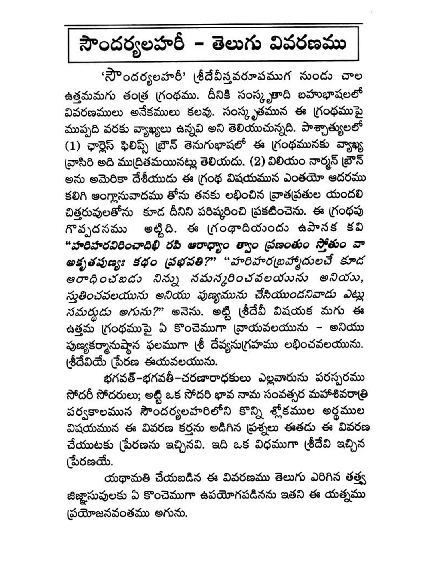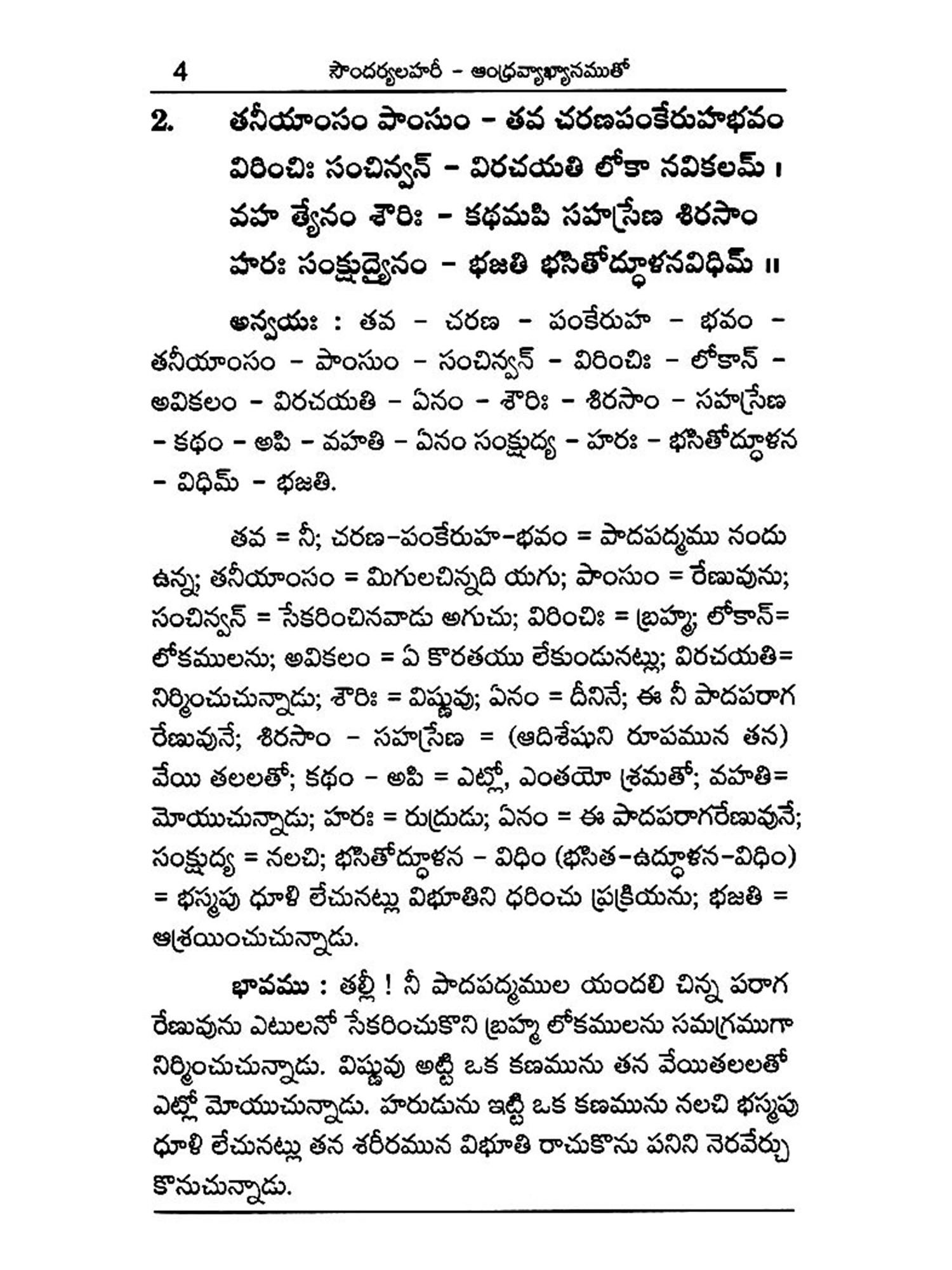 Soundarya Lahari- Shloka Thatparya Sahitham (Telugu)