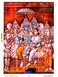 These paintings are masterpieces in storytelling. They compress epics into friezes of gesture and gaze Bhikshatana's stride that humbles pride, Hanuman leaping on Ravana's fortress, Andal's garland transformed into theology, Siva's tandava setting the rhythm of the cosmos. They also preserve the unnoticed: ships docking in estuaries, horse-traders bargaining, musical pillars turning stone into sound, and costumes woven on looms that no longer exist. Crafted from the very earth indigo, cinnabar, lamp soot, conch white, and herbal binders these palettes endure because they are drawn from the same natural world they depict.