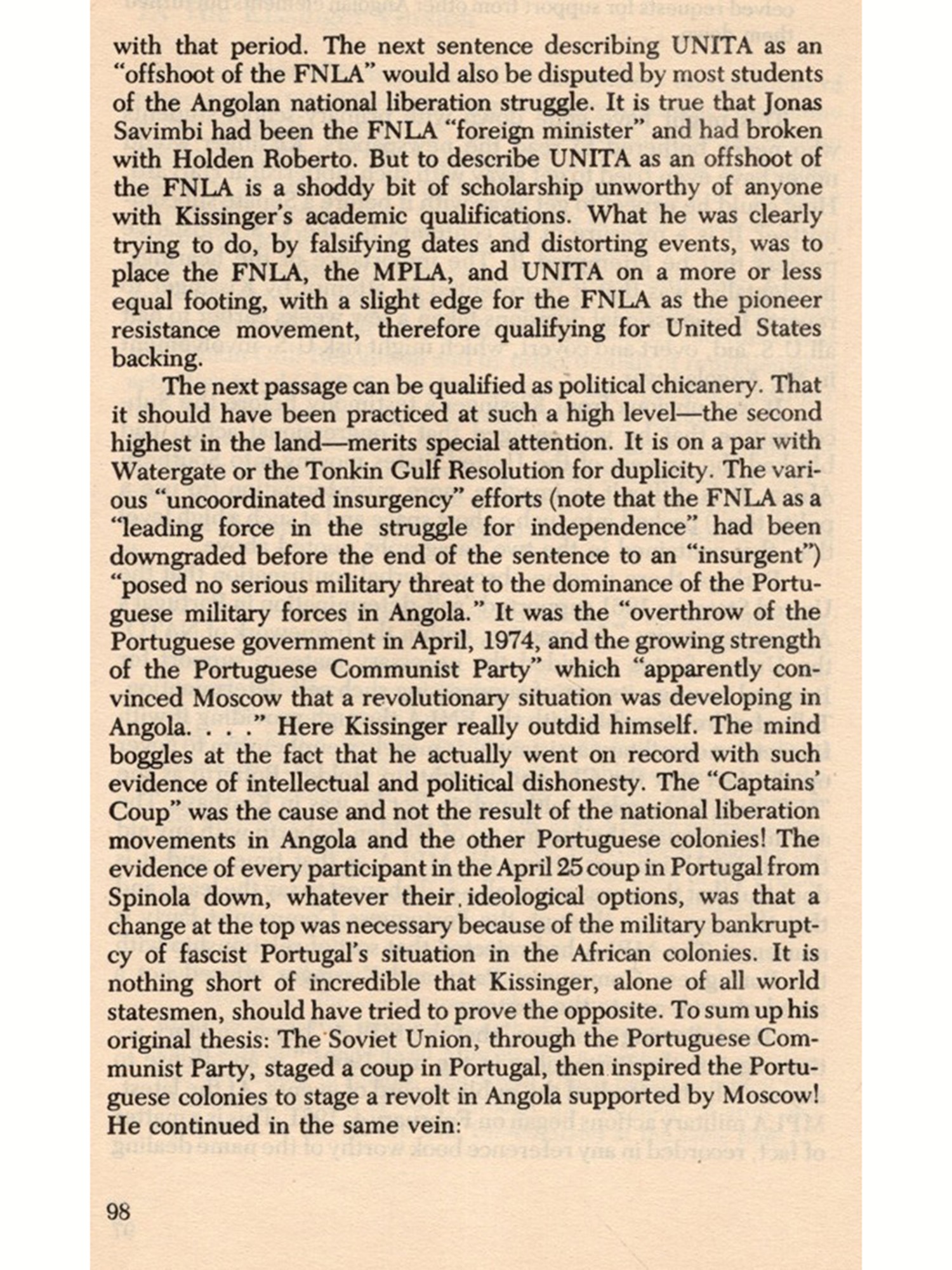 The further the waves of independence reached south, how-ever, where white racism was most strongly entrenched, the more perverse was the leadership resistance to change. This was the case in the African colonies which Portugal had held for nearly 500 years. A totalitarian, fascist regime in Lisbon nullified any possibility of support in the "mother country" for those who agitated for independence. There was no way in which public sympathy could be aroused through parliamentary debate or through the press. It was the case in South Africa where a type of internal colonialism held sway, where a white minority exercised a harsh dictatorship over an overwhelming majority of blacks, coloreds (the official designation of people of mixed race) and Asians. It was the case in Namibia (South West Africa) illegally ruled as a colony of South Africa under the same racist laws. It was the case in the British colony of Rhodesia (Zimbabwe), where a white, racist minority had illegally seized power and isolated the black majority from all channels of support which independence movements in other British colonies had received.