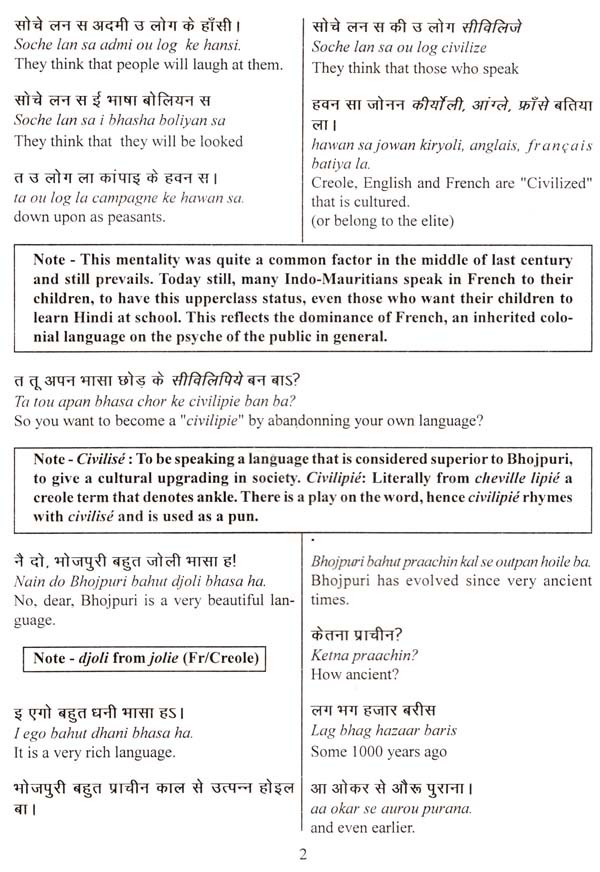 Seeing this growing interest in the public for a language constantly pushed to the back-waters of the Mauritian linguistic literary and cultural scene by a sort of language coloniza-tion or linguistic genocide, I decided to write a book that would not only make learning Bhojpuri appealing and interesting but also reflect on its deep cultural and societal anchor-age on our soil. At the same time it would bring esteem and pride in a heritage that survived on its own merits and resilience, despite constant onslaught and pressure.