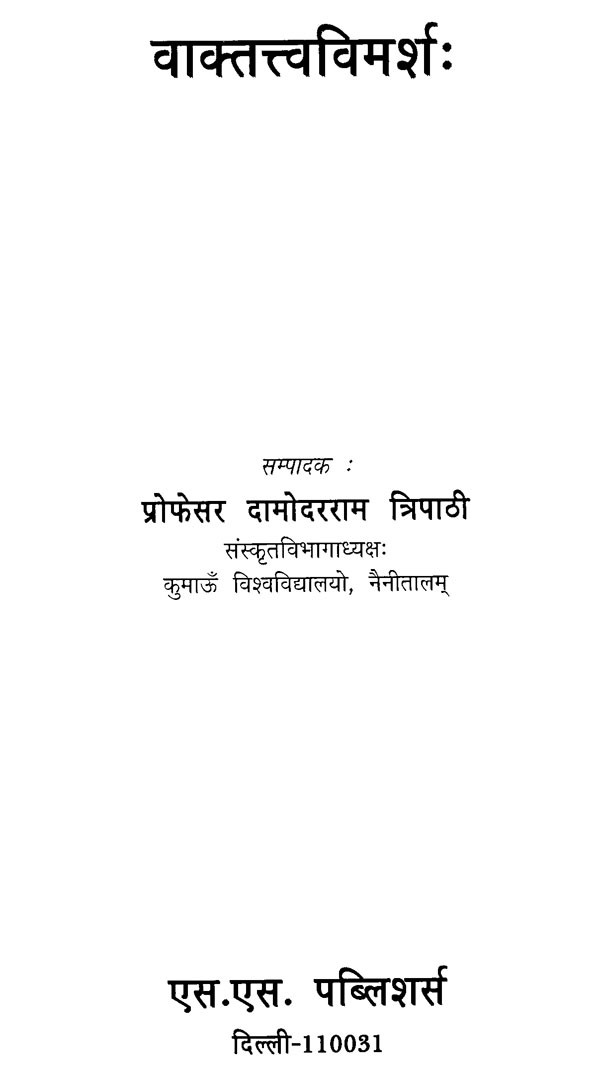 वाक्तत्त्वविमर्शः- Speech Discussion: