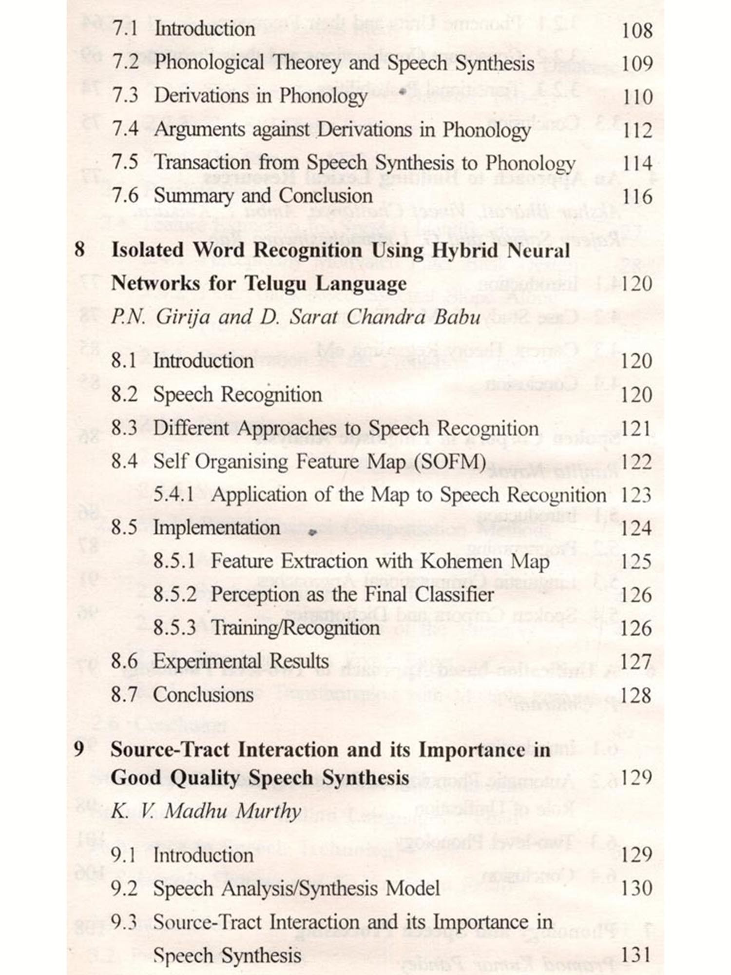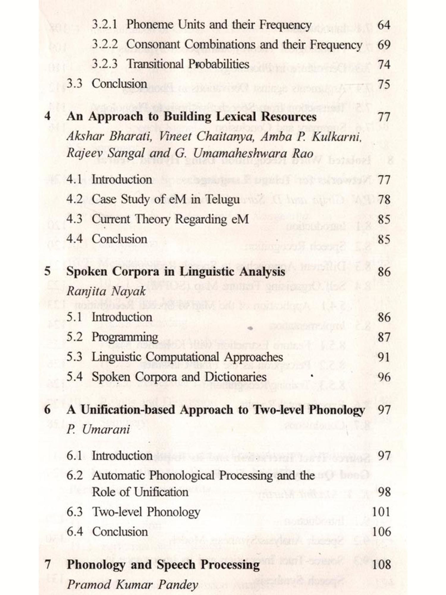 Several phases of Linguistics including semantics, historical and comparative linguistics will be benefited by the use of computer and speech laboratories. A new area of research is ushered in India. The articles found in this volume and careful editing of Prof. K. Nagamma Reddy will be gratefully remembered by Scholars in India and elsewhere.