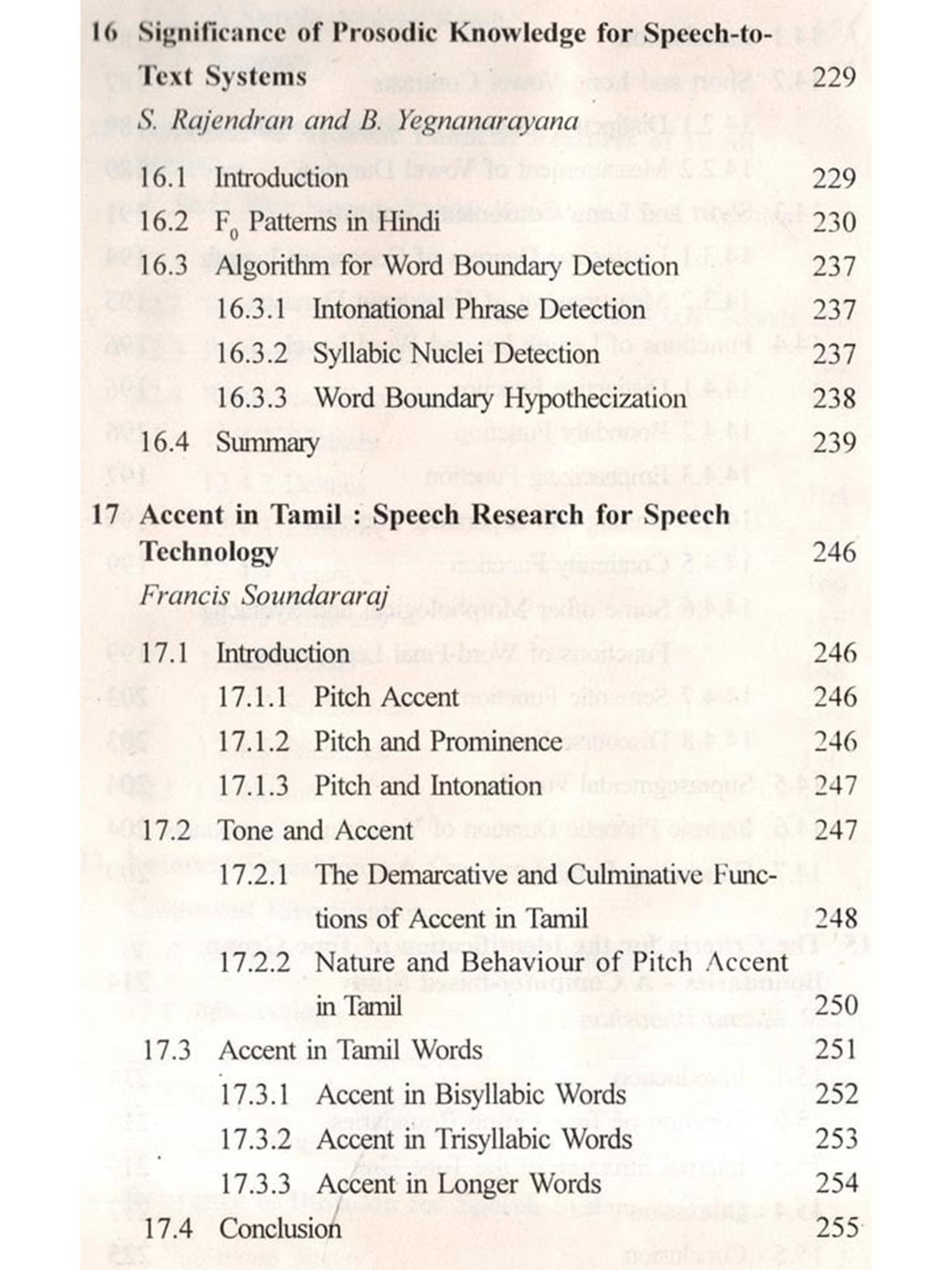 When computer became a handy tool for extensive calculation and formulation of hypothesis, study of acoustic phonetics was undertaken by scholars of the departments of physics, computer science, statistics and linguistics. Researchers showed interest to voice scripts, speech recognition and such other related fields where such projects attracted research funds. Many came forward and the papers in this book are an index of the growth in the area of Speech Technology.