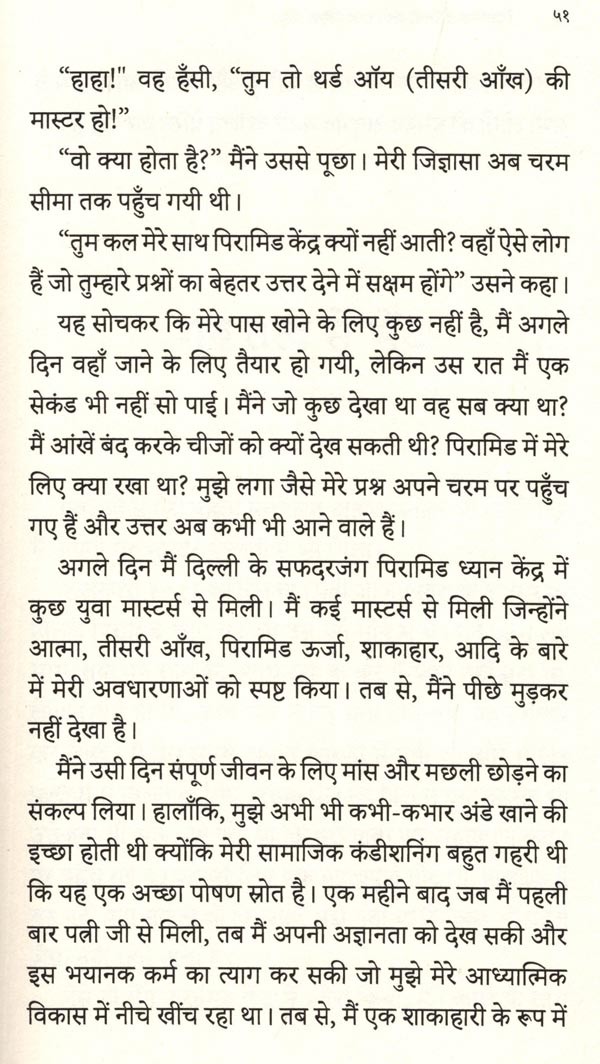 गैर-काल्पनिक, सूखे तथ्यों के बारे में पढ़ना मुझे अच्छा नहीं लगता था। भौतिक दुनिया के बारे में मैं समझती नहीं थी। मुझे उस समय 'आध्यात्मिक अनुभव' जैसी किसी भी श्रेणी की किताबों के बारे में पता नहीं था। वर्षों बाद ही मुझे पता चला कि उन सभी वर्षों में मैं गलत तरह की गैर-काल्पनिक और सही तरह की काल्पनिक कहानियाँ पढ़ रहा थी। इन्हीं किताबों का झुकाव मुझे वहाँ ले आया है जहाँ मैं आज हूँ।