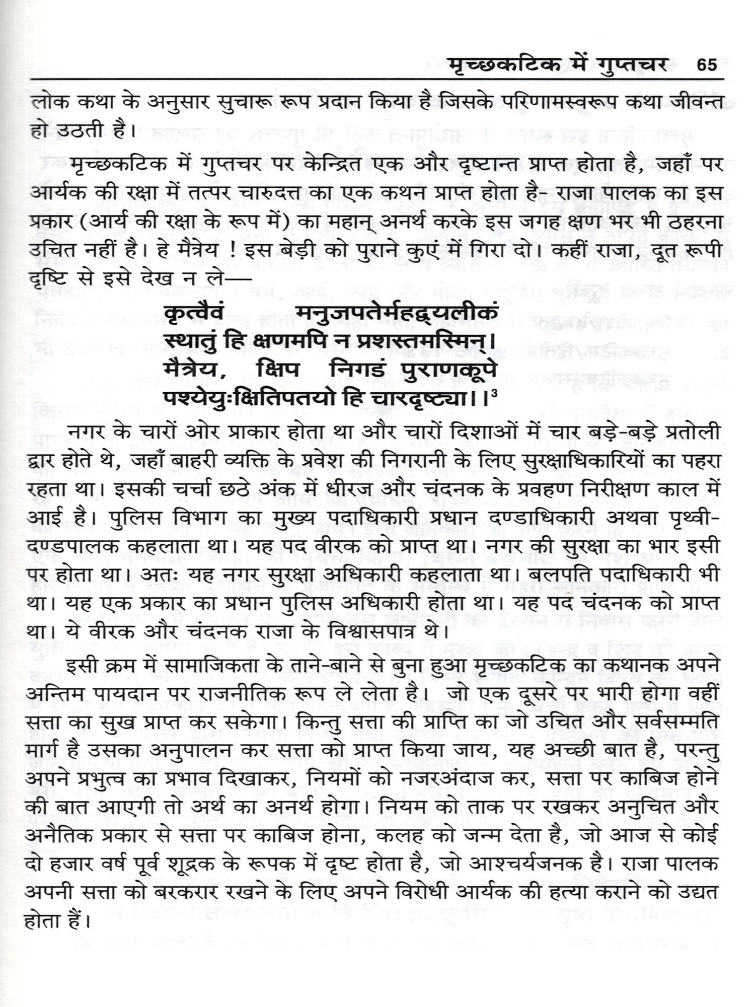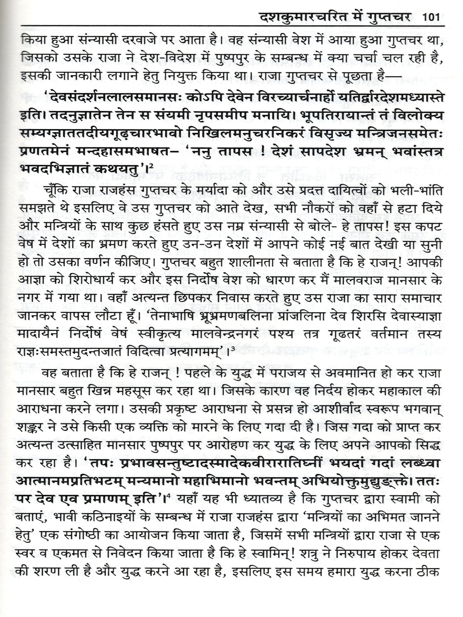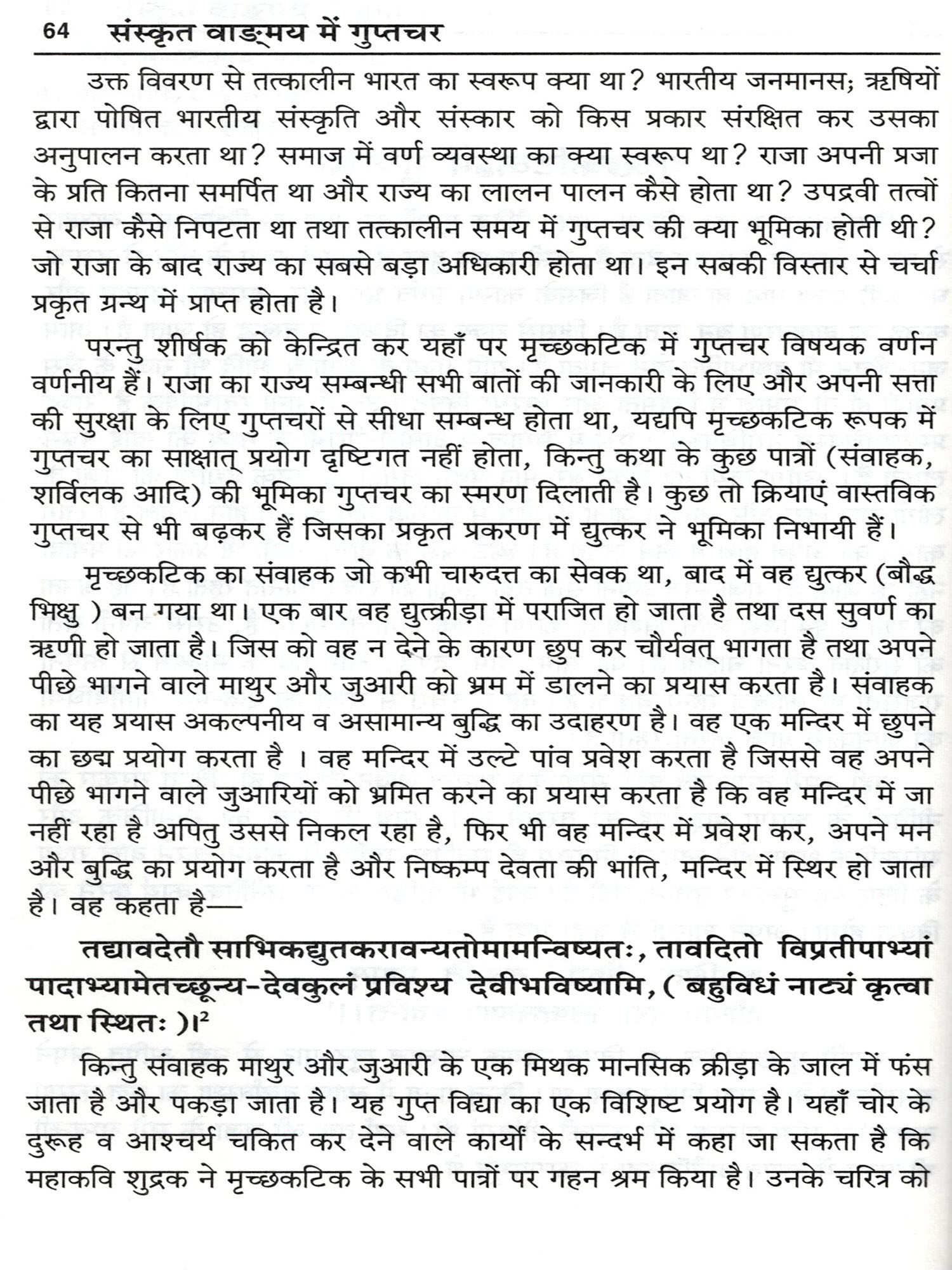 इस पुस्तक में आदिकाव्य वाल्मीकि रामायण से अम्बिकादत्त व्यास विरचित शिवराजविजय पर्यन्त सभी ग्रन्थों में वर्णित गुप्तचर के अलग-अलग स्वरूप दिखाई पड़ते है। जो विभिन्न विधाओं से अपने स्वामी सहित सम्पूर्ण प्रजा की रक्षा की जिम्मेदारियाँ निभाते है तथा प्रतिवेशी राजा के दुष्ट योजनाओं का भेदन करते है।