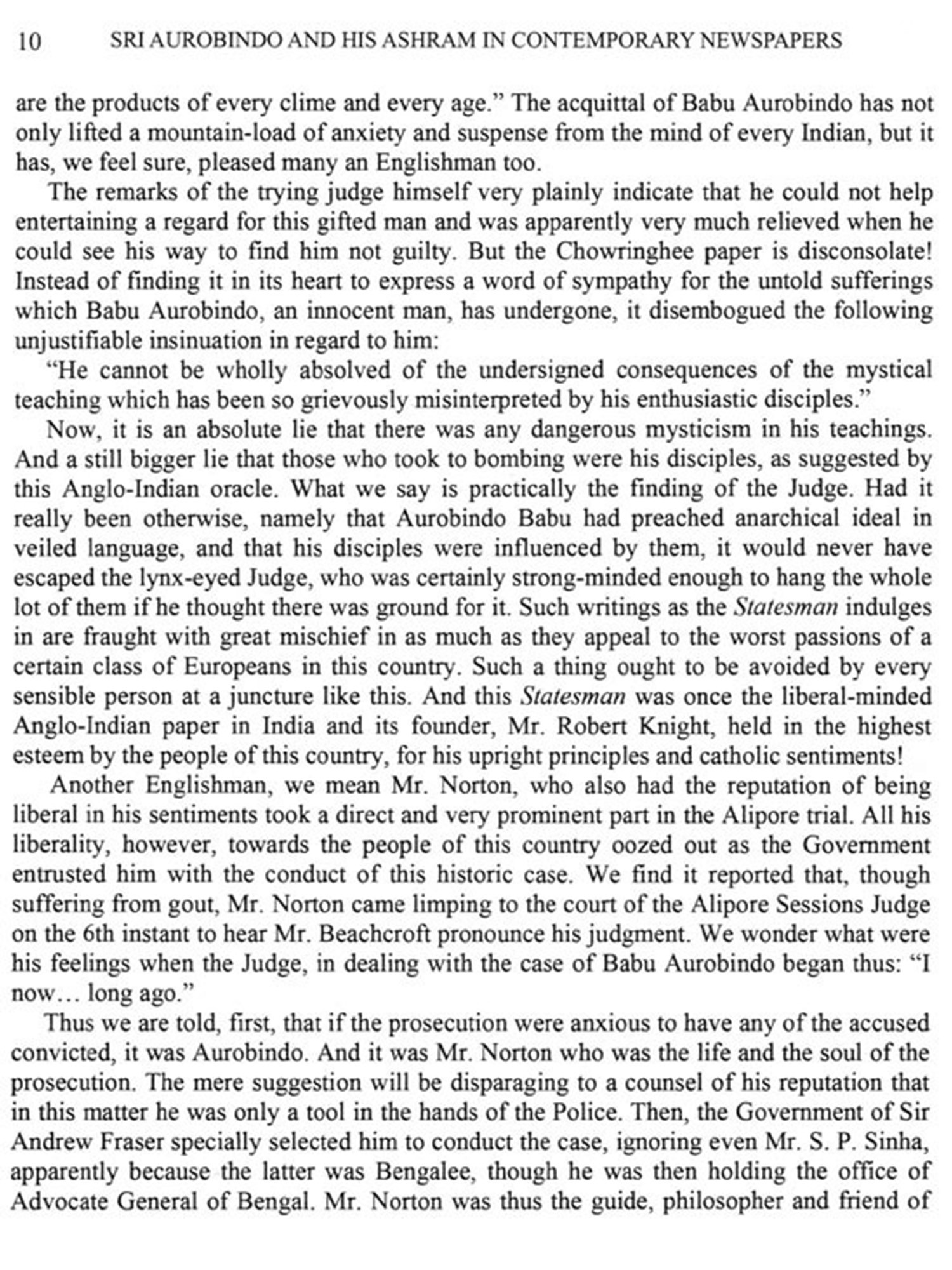 In these press reports, the reader would observe that Sri Aurobindo's name has been spelled as 'Aravinda', 'Arabindo', etc. Keeping in mind the archival significance of these reports, the names have been quoted as they had appeared in print.