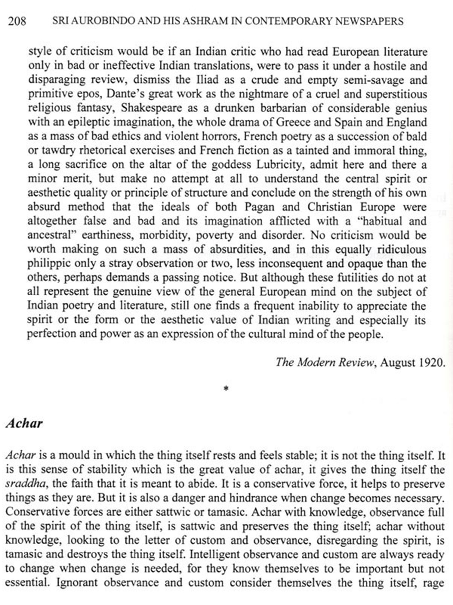 result would be There were certain events of the Sri Aurobindo Ashram, Pondicherry, which were not covered by the leading newspapers but were done by not-so-famous and short-lived newspapers and it was quite difficult to procure those files. Fortunately, press reports on Sri Aurobindo and his Ashram which had appeared in the lesser-known newspapers were preserved in the Archives and Research Department of Sri Aurobindo Ashram, Pondicherry With the kind permission of Shri Manoj Dasgupta, the Managing Trustee of Sri Aurobindo Ashram Trust, I was granted access to these reports which were collected by some of the early members of the Sri Aurobindo Ashram. Although these devoted disciples had preserved the news cuttings with utmost care, they had missed to mention the dates on which the news reports had appeared. Nevertheless, these press cuttings are of immense significance from the archival perspective at times.
