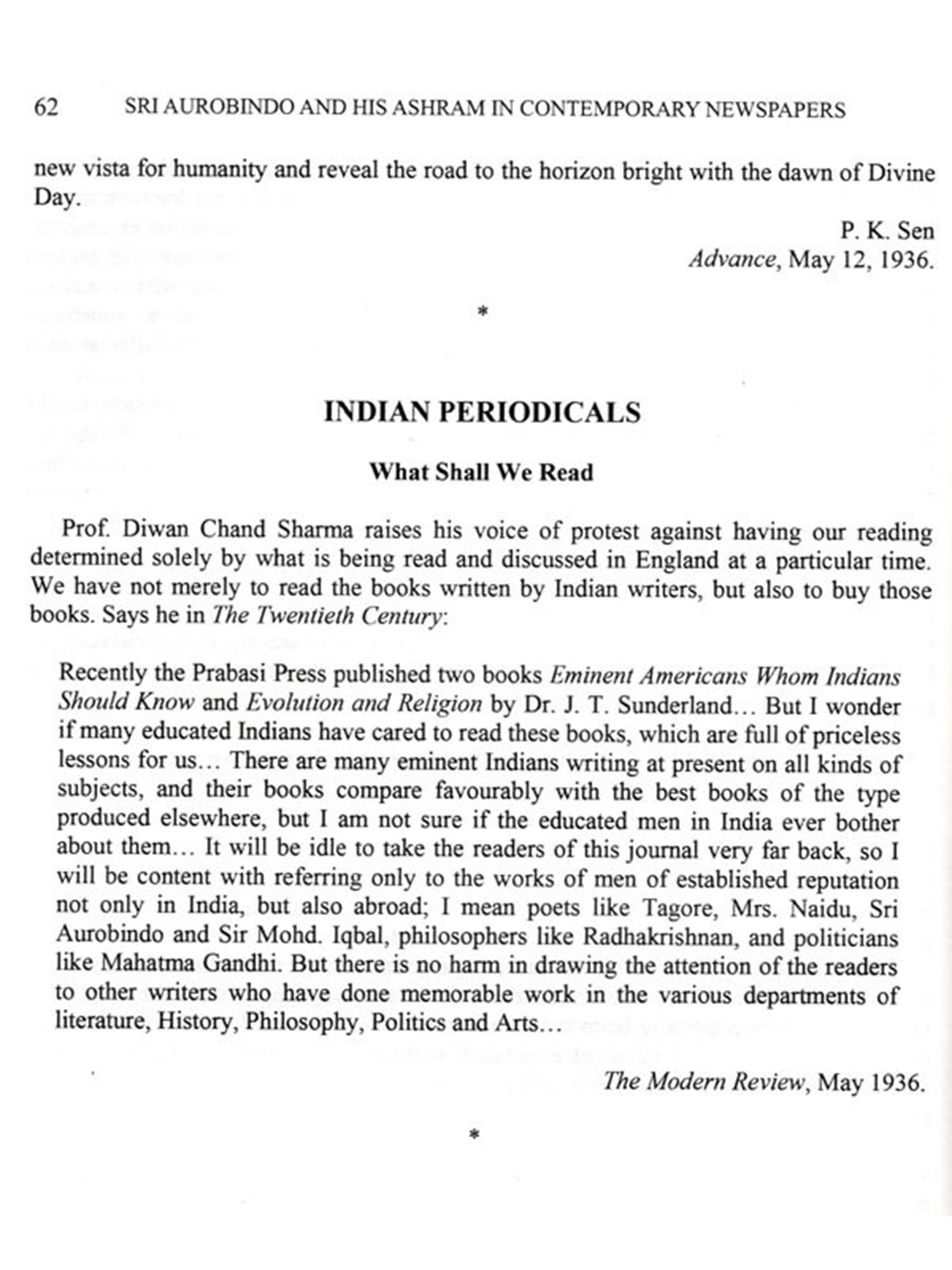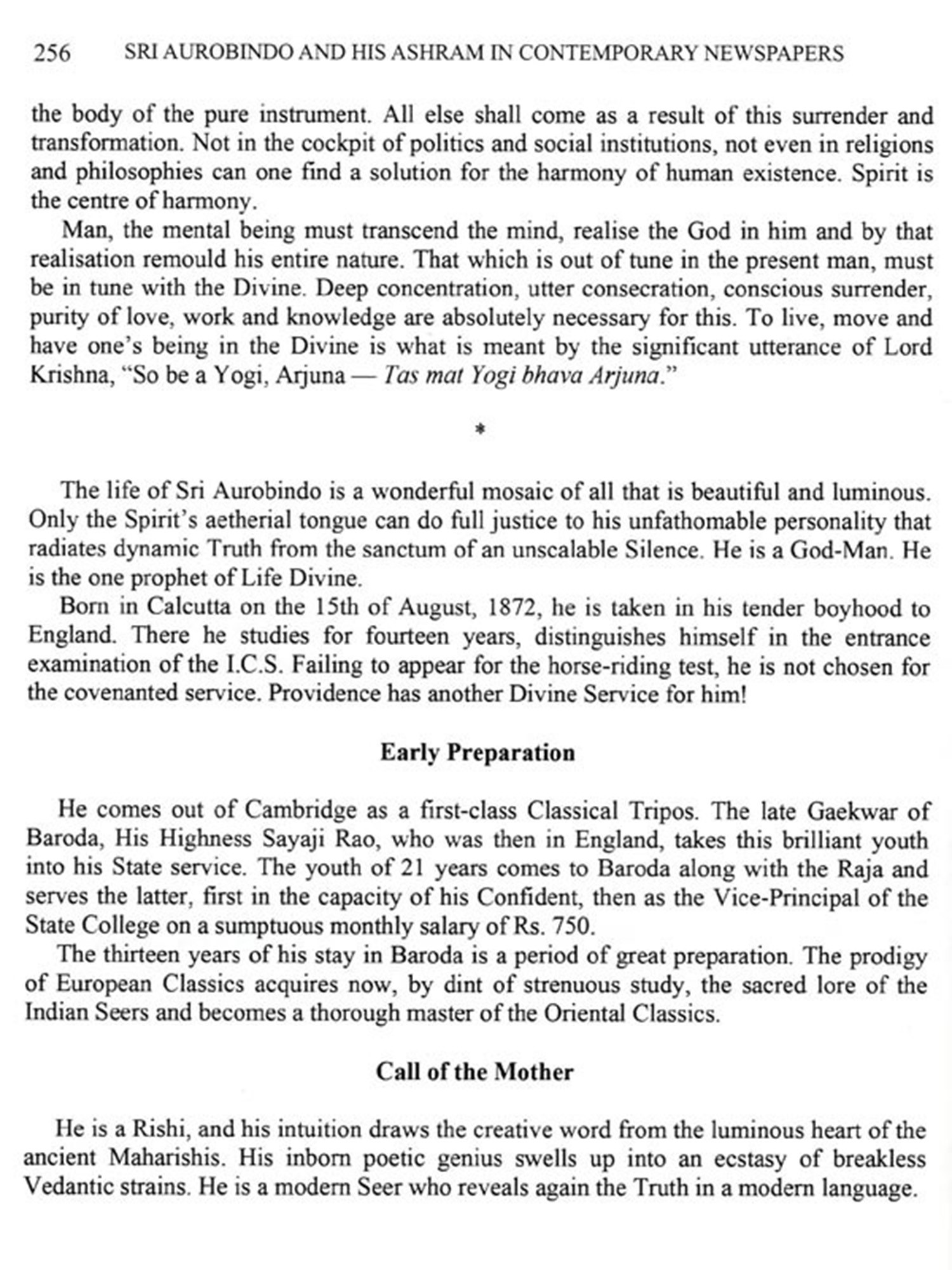 When it was assumed that no new press reports would be available and that the search was finally over, quite unexpectedly I would come across some more newspaper clippings on Sri Aurobindo Once it so happened that at a time when I felt that this project was finally over, a well-wisher showed to me a scrapbook from his father's collection in which many press reports on Sri Aurobindo covering the period 1949-50 were preserved. These new reports further enriched my collection And thus, I would recommence my search with the expectation to find some more precious press coverage In this way, the work continued for twelve long years. By the time the seal of completion was put to the project, it dawned to me that after a few more weeks the year 2022 would start. And what better occasion could it be to publish the press reports on Sri Aurobindo on the occasion of his 150th Birth Anniversary!