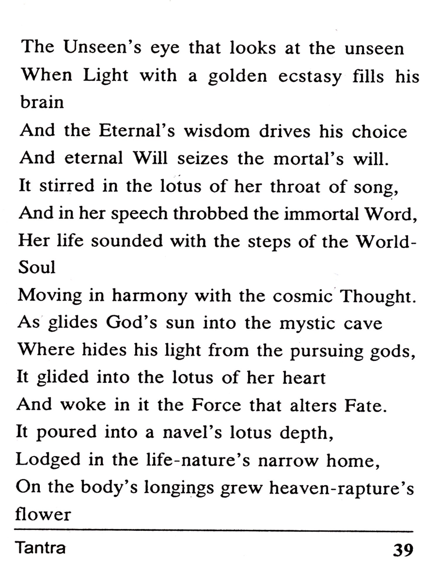 The Tantras, together with the Vedas, constitute the fountain of Indian spirituality. In a broad perspective, they synthesise God and man, man and society, knowledge and practice. The Tantra holds that this world and this universe are the outpourings of a Divine Reality which exists not only in the universe but also in the human body. To recover this true consciousness is the sublime aim of Tantra.