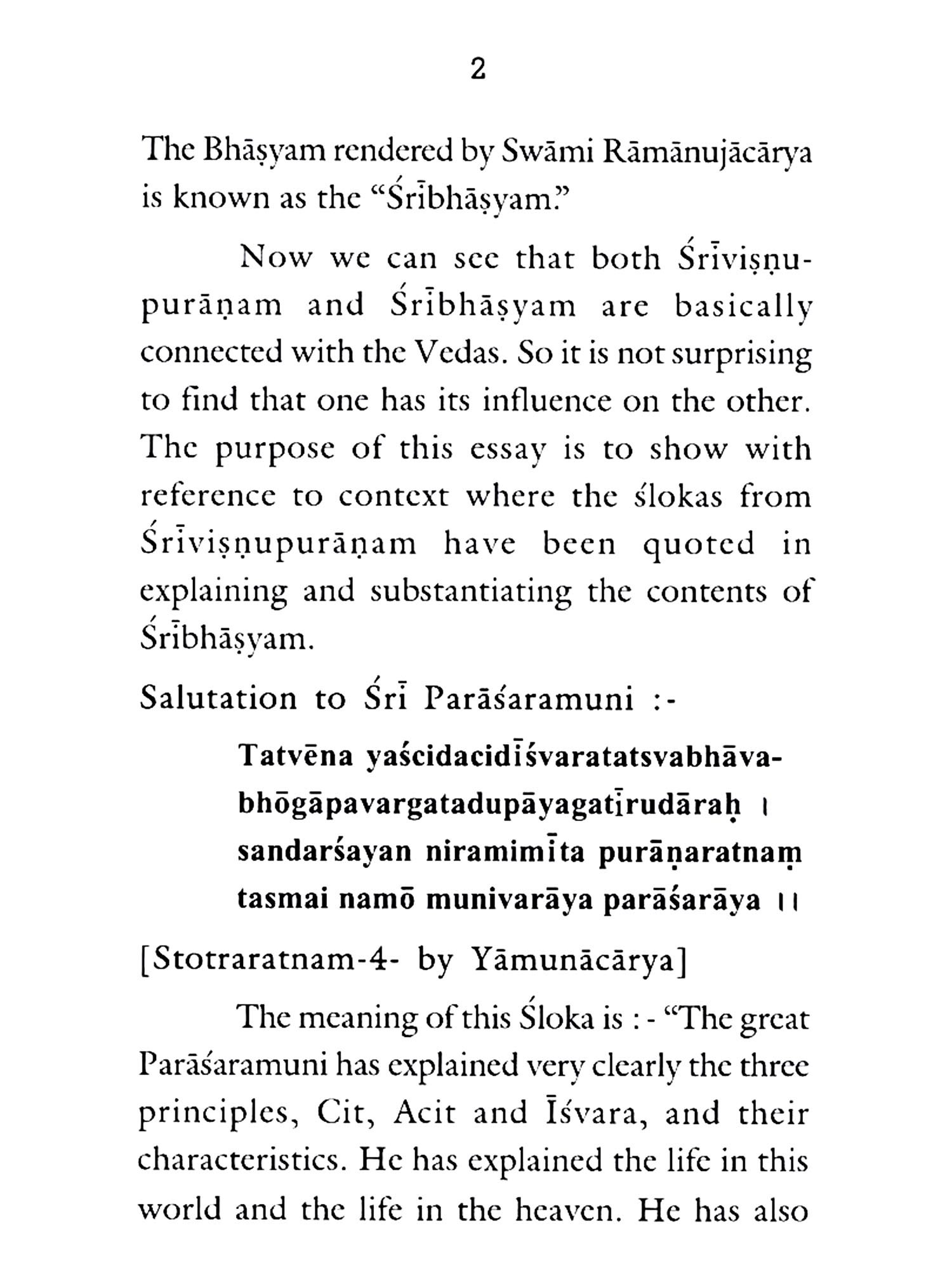 As we are very well aware of the legacy of Sri Ramanujacharya that enshrines the wisdom of Sanskrit along with devotion of Tamil, here is found one such beautiful blend in the title itself 'Sribhashyam and Tiruvaymoli'. It is as though an elixir formed of milk and honey. I hope our keen readers would certainly enjoy such sweet syrup nicely prepared. I also take this opportunity to thank one and all who continue to contribute in different capacities to make this noble mission a real success.