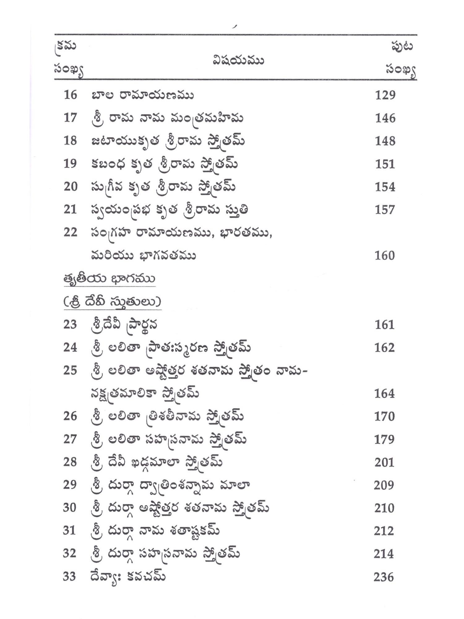 దేవి, దేవతల భగవత్ స్తోత్రములు: Bhagavat Stotras of Goddesses and Deities (Including the Eight Names, Names of All the Gods and Goddesses, Worship Methods, Sri Sukta, Purusha Sukta) Telugu