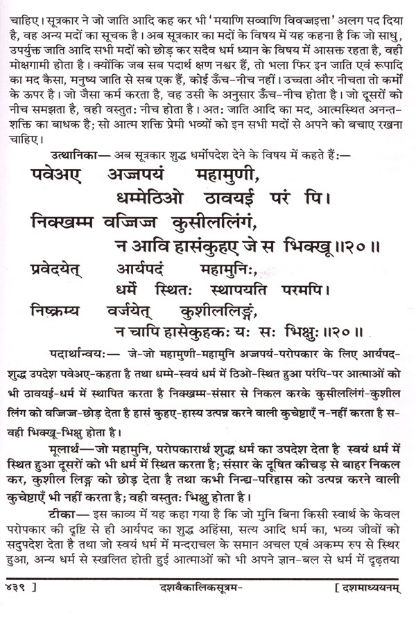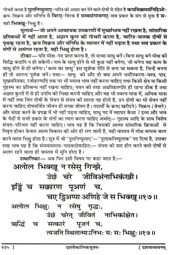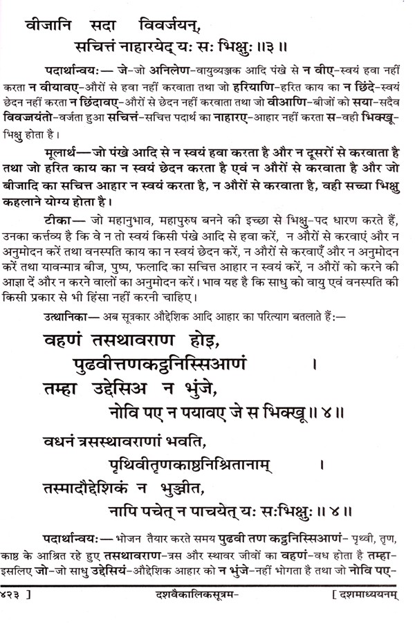 श्री दशवैकालिक सूत्रम्: Sri Dashavaikalik Sutram (Sanskrutachaya-Padarthanvaya-Mulaarthopetam Ganpatigunaprakashika Hindi-Bhasha-Tika Sahitam)
