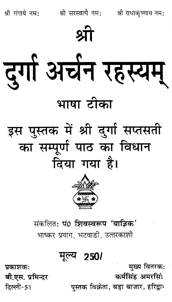The complete recitation of Shri Durga Saptasati is given in this book.