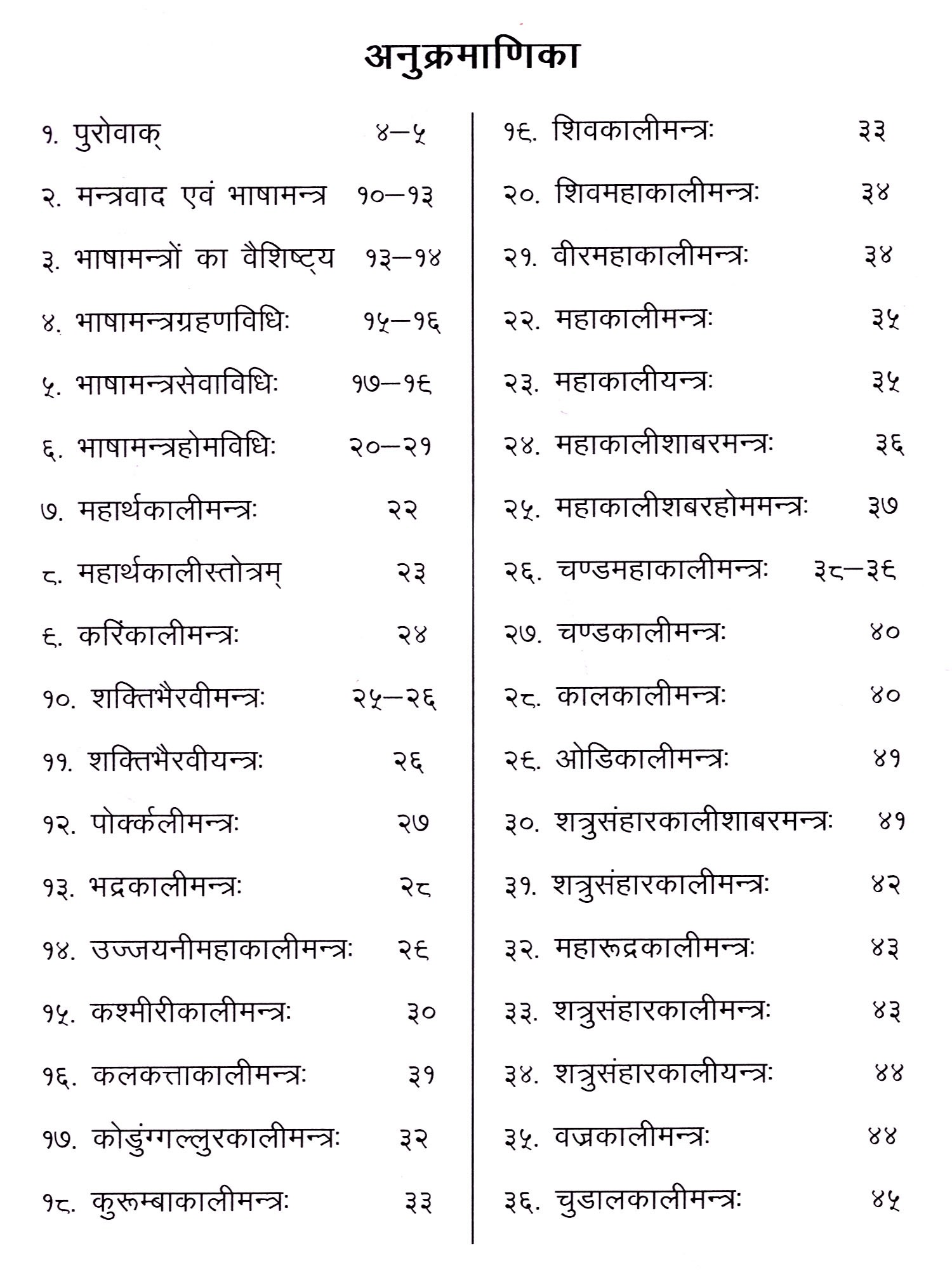 श्रीकालीभाषामन्त्रमञ्जरी एवं श्रीताराशाबरम्: Sri Kalibhasha Mantramanjari and Sri Tarashabara
