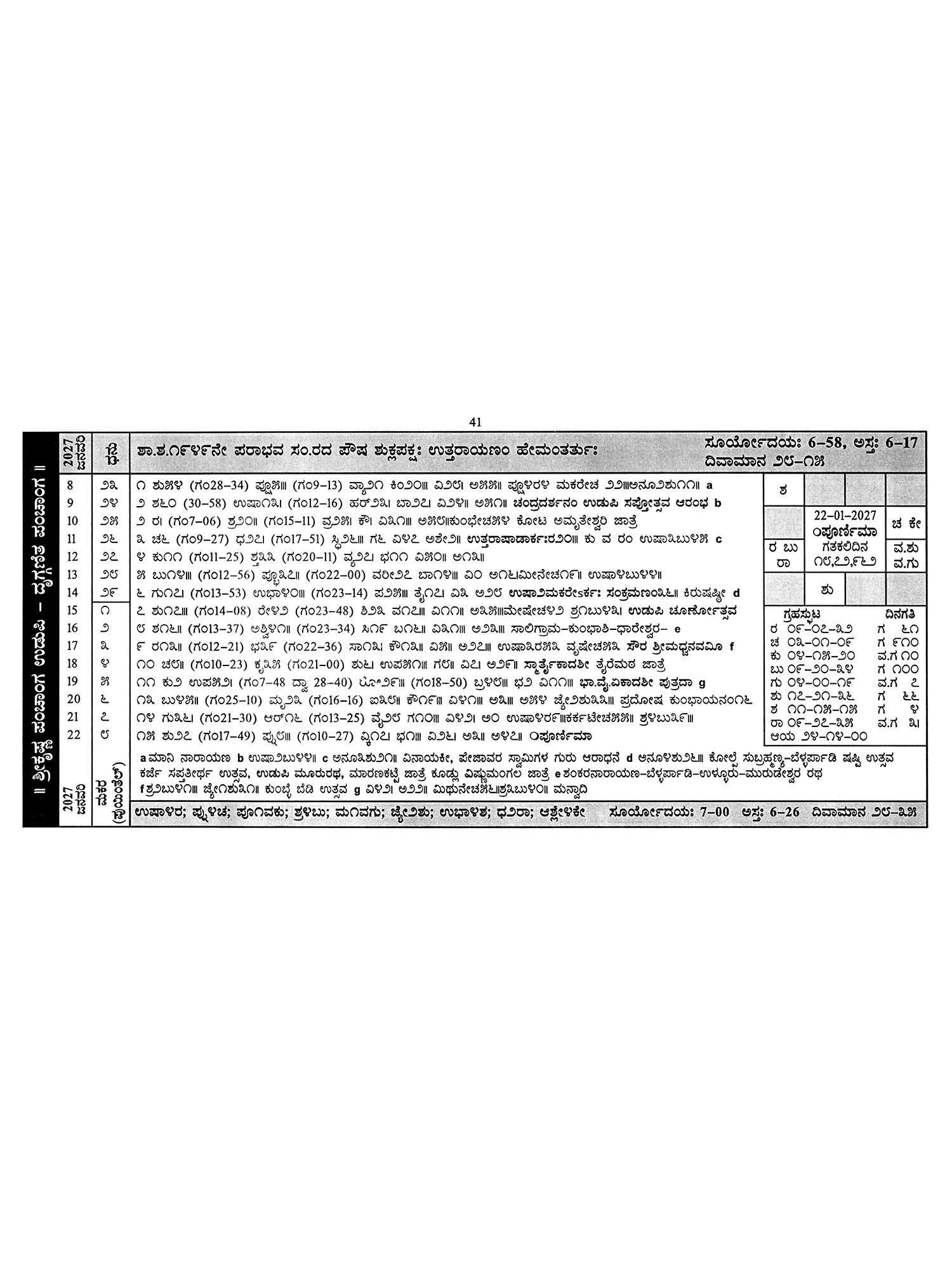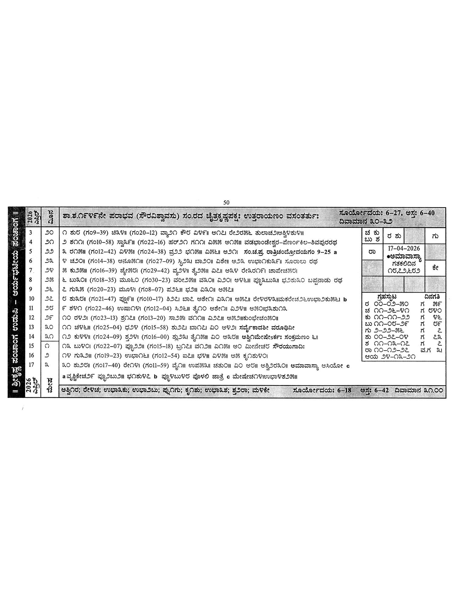 ಶ್ರೀ ಶೃಂಗೇರಿ ಶ್ರೀ ಮಠೀಯ ಪಂಚಾಂಗ: Sri Sringeri Sri Mathiya Panchanga (Kannada)
