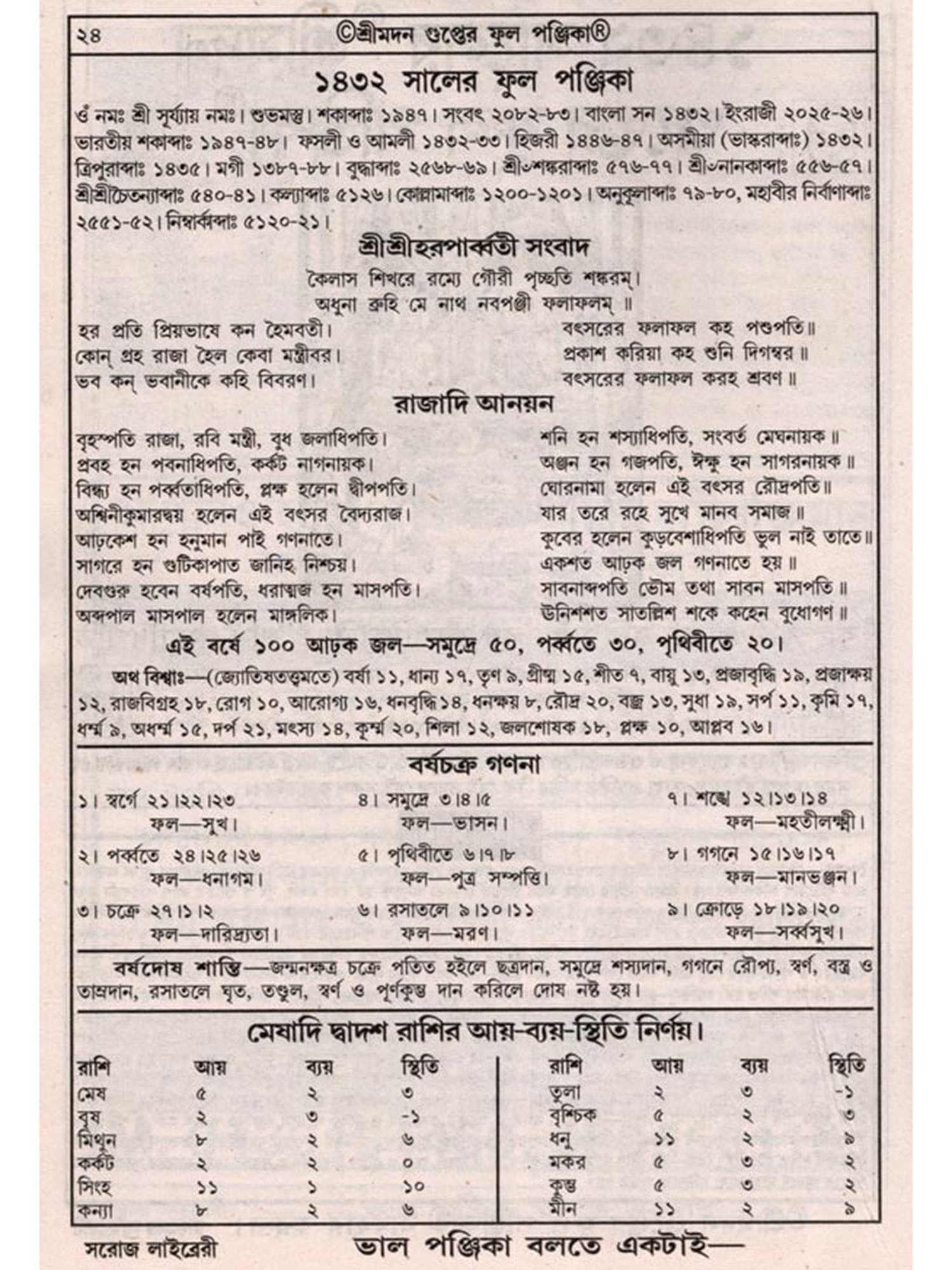 জ্যোতিষ-রত্নাকর সর্ব্ব-জ্যোতিষ-শাস্ত্রের সার সঙ্কলন- Astrology-Ratnakara - A Compilation of All the Sciences of Astrology (Bengali)