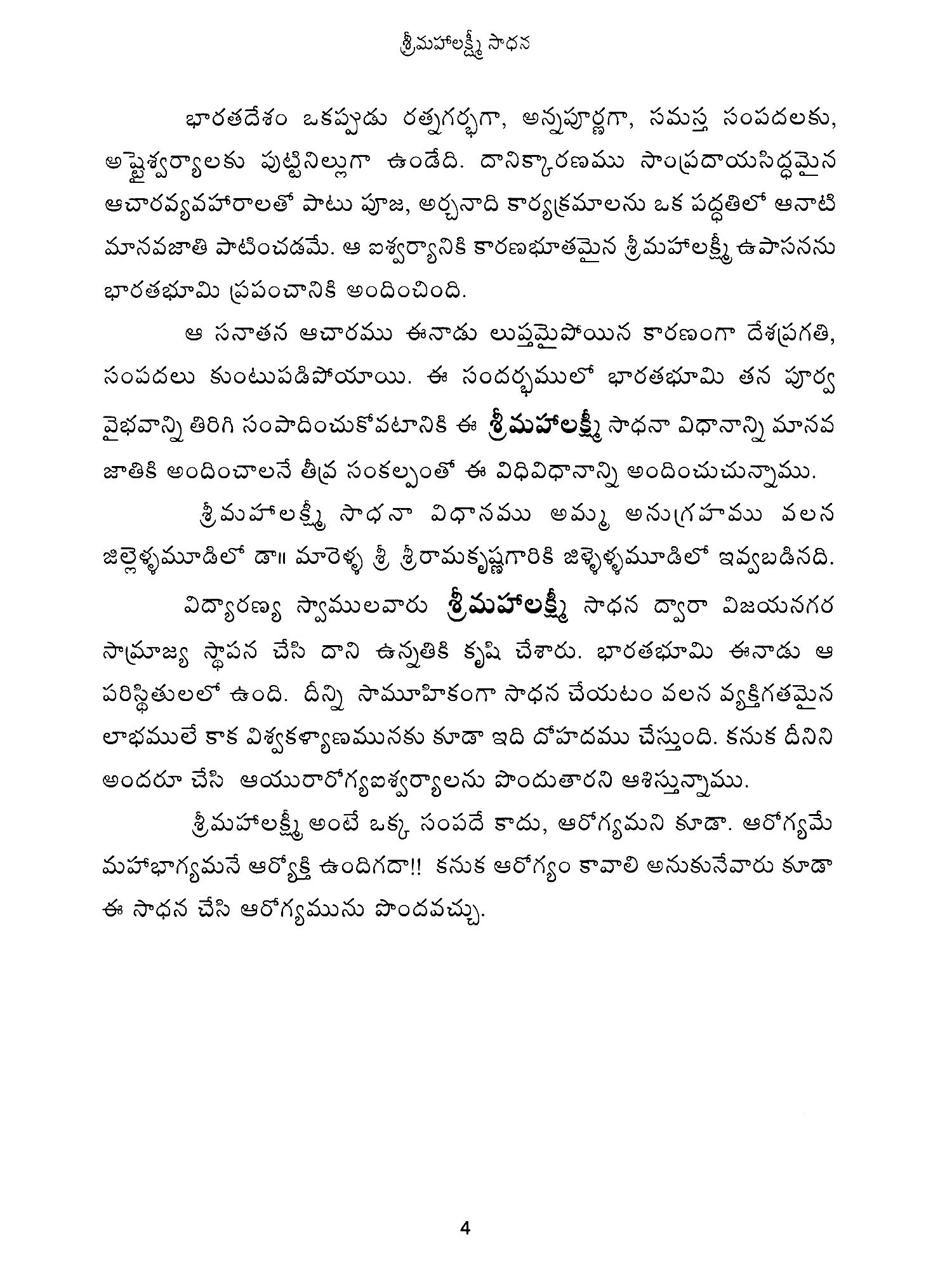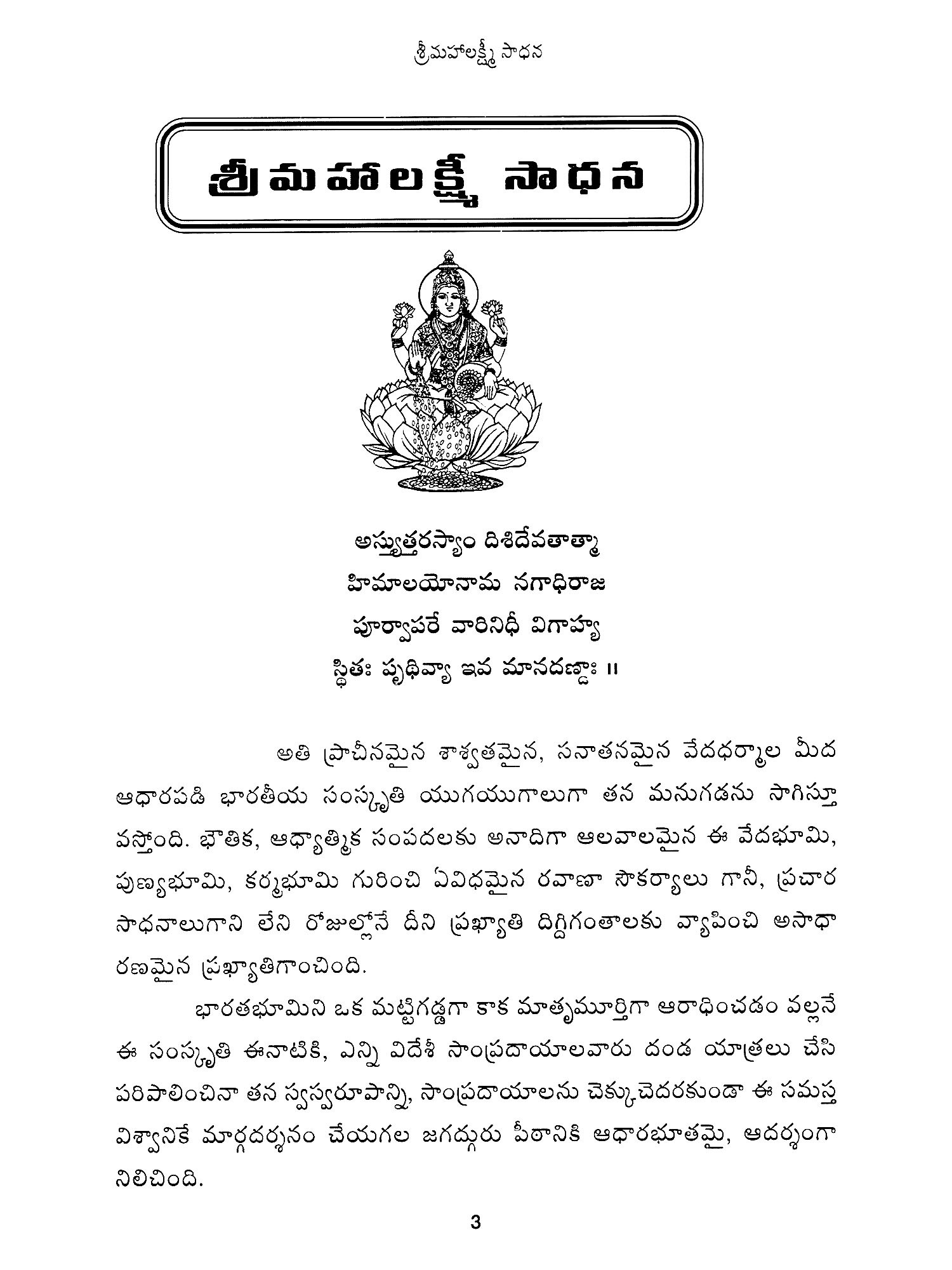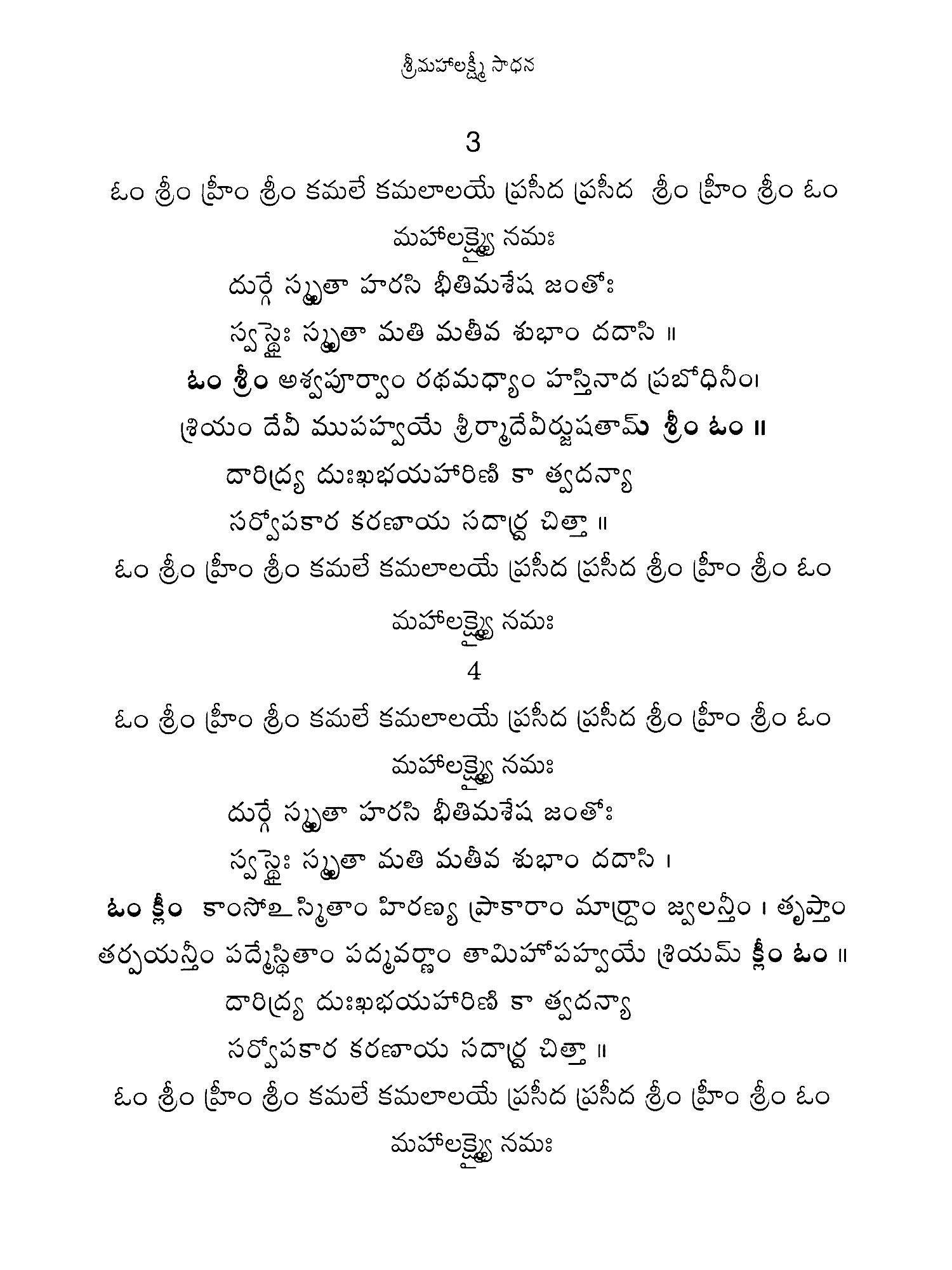శ్రీ మహాలక్ష్మీ పూజా విధానము: Shri Mahalakshmi Pooja Vidhanamu (Telugu)