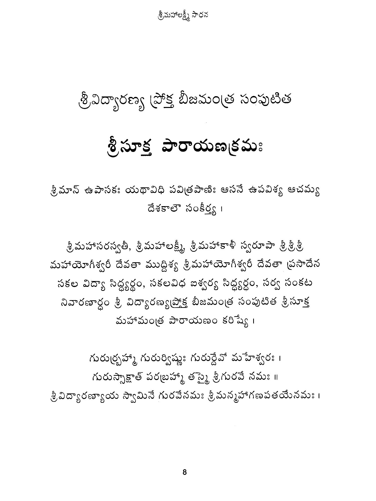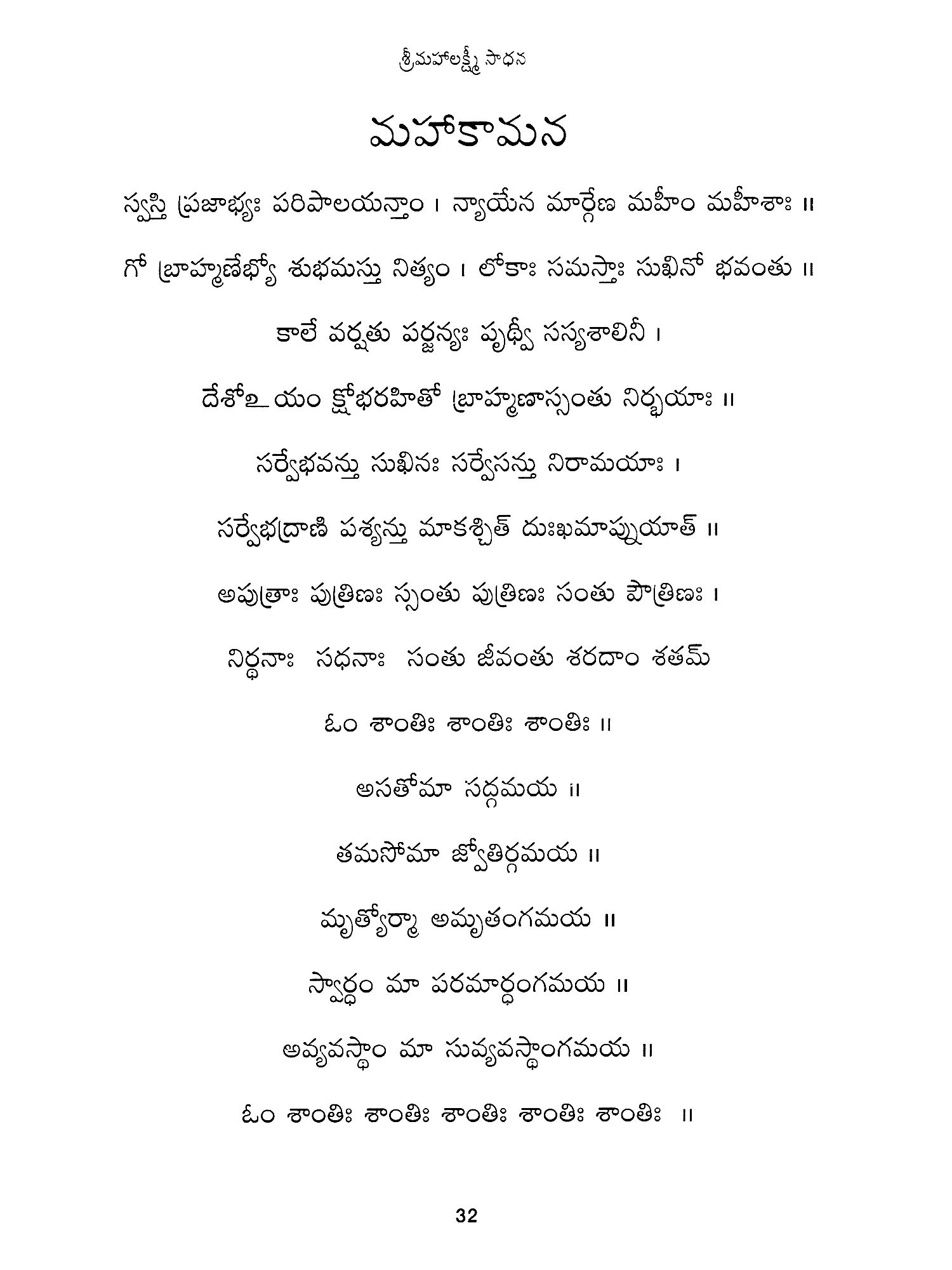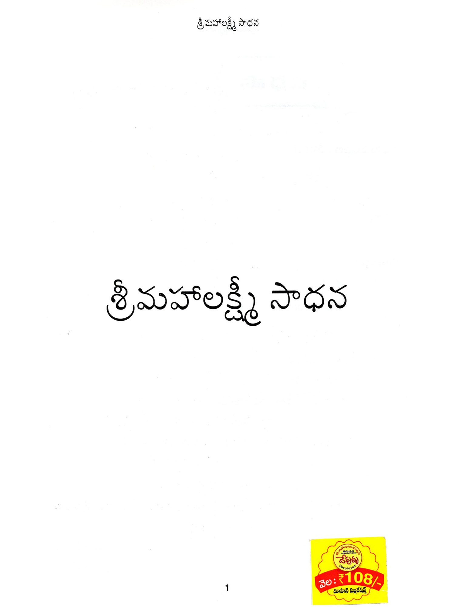 శ్రీ మహాలక్ష్మీ పూజా విధానము: Shri Mahalakshmi Pooja Vidhanamu (Telugu)