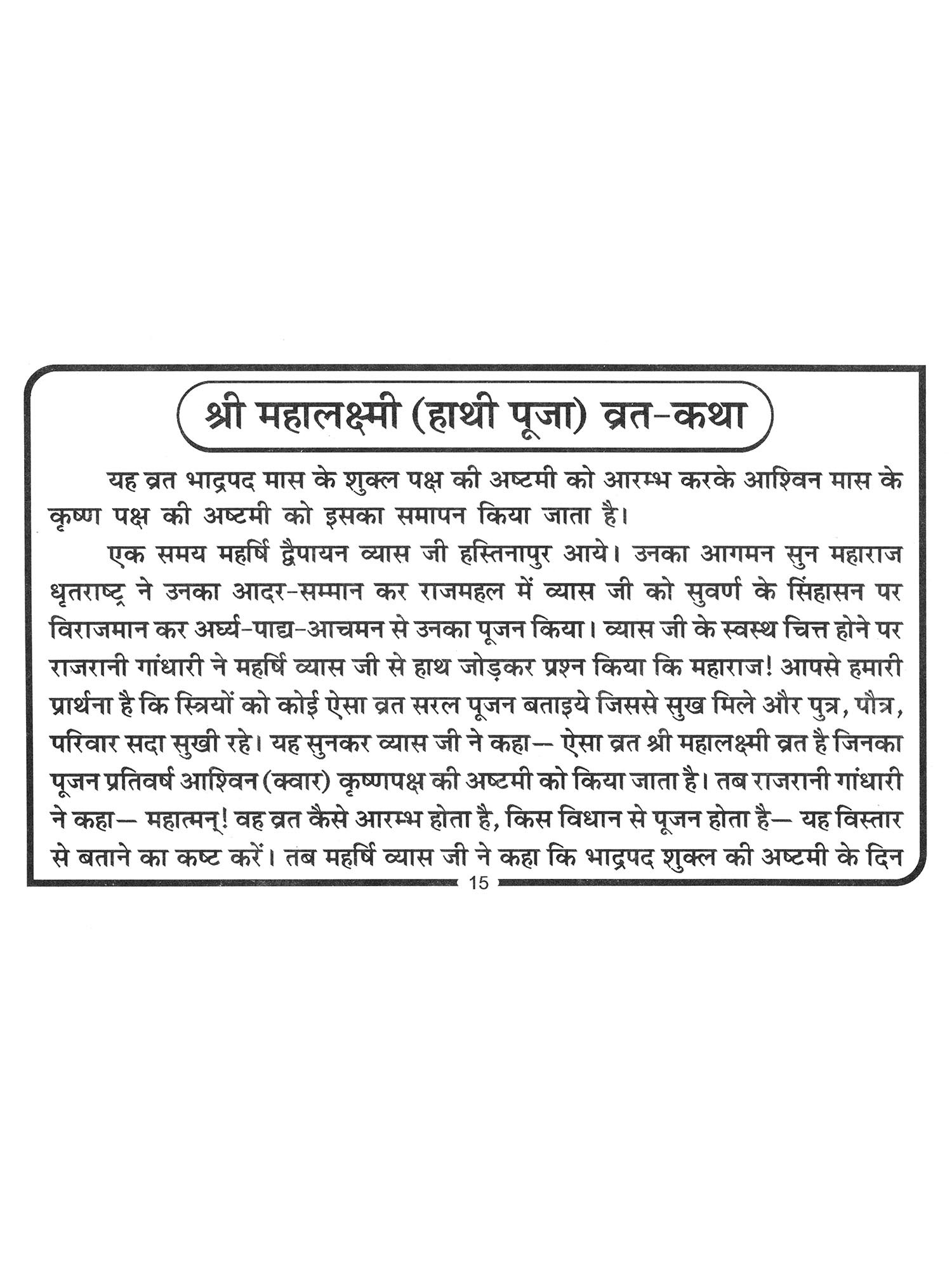 श्री महालक्ष्मी व्रत कथा (हाथी पूजा कथा): Sri Mahalakshmi Vrat Katha (Hathi Puja Vrat Katha)
