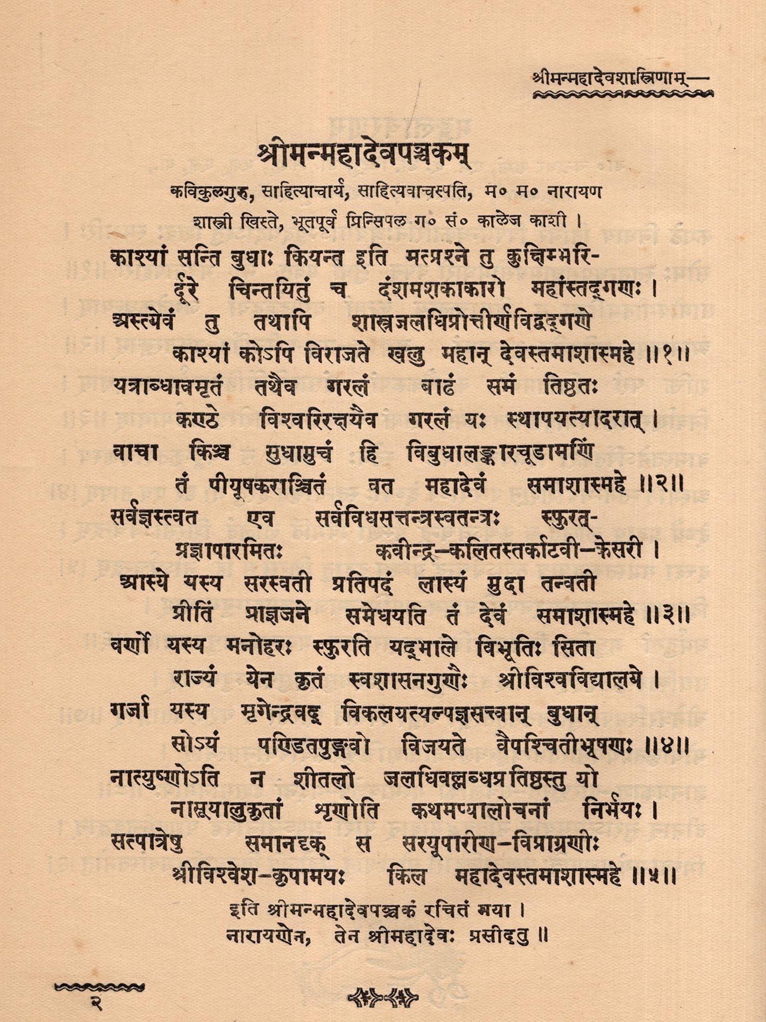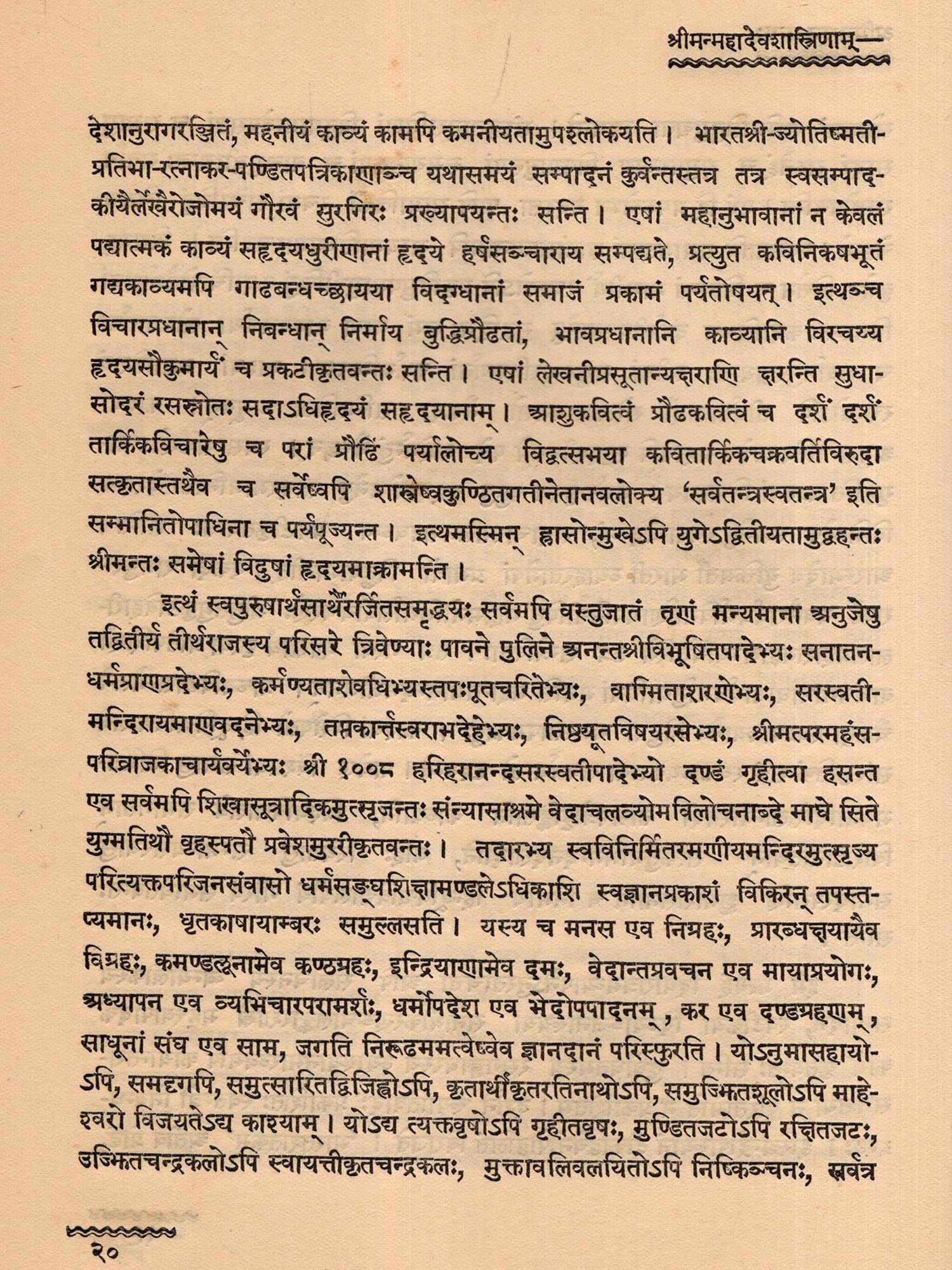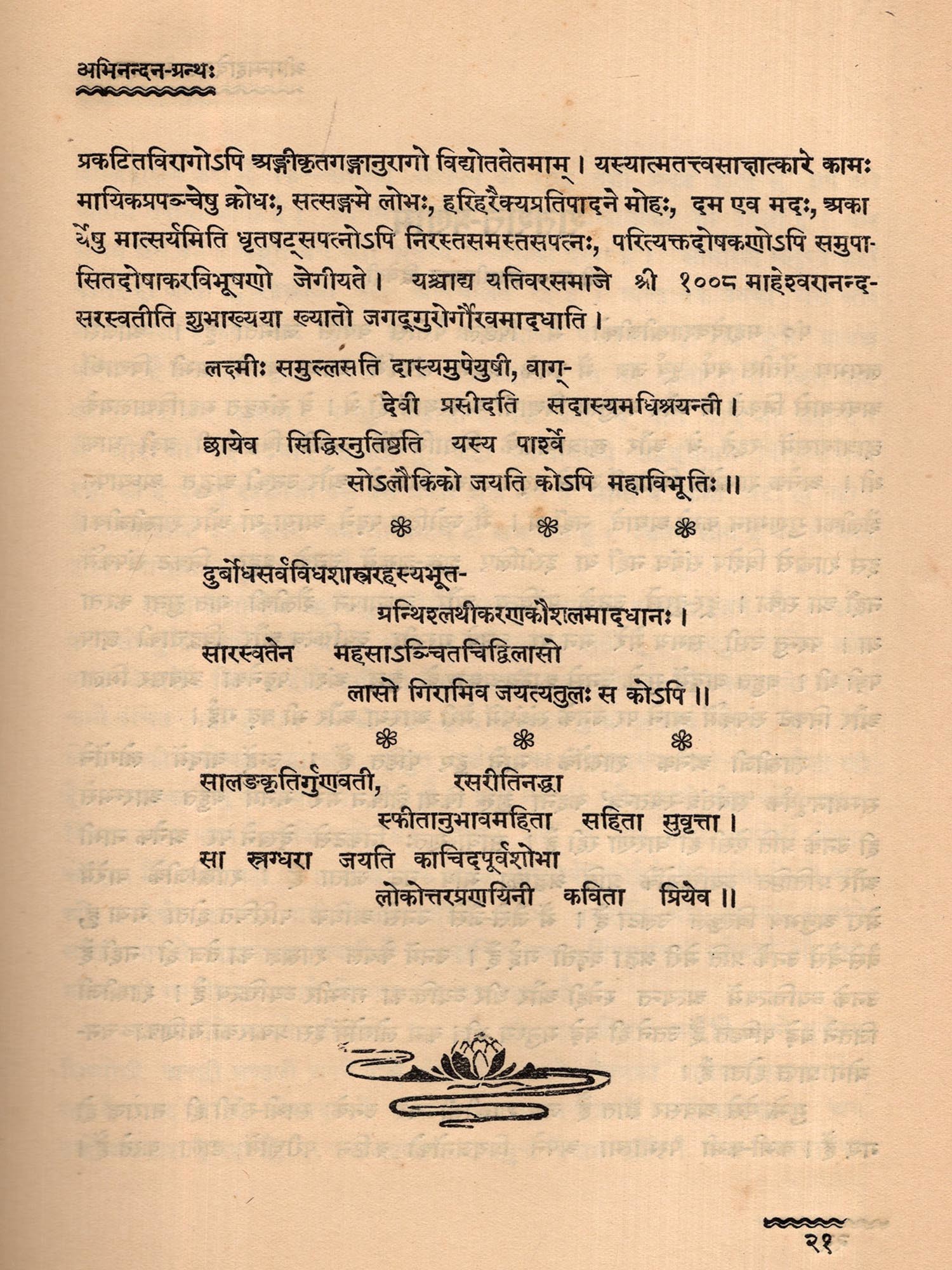 कविताकिक-चक्रवर्ती साहित्याचार्य पं० महादेव शास्त्री (श्री १०८ महेश्वरानन्द सरस्वती जो) के अभिनन्दन-ग्रन्य के लिए विद्वन्-मंडली ने उसके हिन्दी विभाग का सम्पादक चुनकर मुझे जो गौरव प्रदान किया है उसके लिए मैं उन सभी गुणज्ञों का हृदय से अनुगृहीत हूँ। काशी की विद्वन्-मंडली ने यह अभिनन्दन-ग्रन्थ प्रकाशित और सपित करके माननीय स्वामो श्री १०८ महेश्वरानन्द सरस्वतीजी का नहीं वरन् अपना गौरवसम्वर्द्धन किया है। प्रारंभ से ही जब वे काशी हिन्दू विश्वविद्यालय के प्राच्य-विभाग में अध्ययन कर रहे थे, मेरा उनका अत्यन्त सान्निध्यपूर्ण तया आत्मीयतापूर्ण सम्पर्क रहा है। अध्ययन काल में भी उनकी गंभीर अध्ययनशीलता, अत्यंत सात्त्विक वृत्ति, साधु प्रकृति, चिन्तनशील प्रवृत्ति, मृदु स्वभाव, स्नेहालु और विद्याध्यसनी भावना ने मुझे बहुत प्रभावित किया था। केवल साहित्य पर ही नहीं, व्याकरण और दर्शन पर भी उनका प्रगाढ़ अधिकार है। ये बड़े कुशल वक्ता और तात्त्विक विवेचक हैं। संस्कृत साहित्य से संबंध रखनेवाले सभी शास्त्रीय और साहित्यिक विषयों पर उनका अप्रतिम अविंकार है। मेरा यह व्यक्तिगत सौभाग्य रहा है कि काशी हिन्दू विश्वविद्यालय में और बाहर अनेक अवसरों पर मैंने उनके अत्यंत गंभीरतापूर्ण और विद्वत्तापूर्ण दार्शनिक और साहित्यिक प्रवचन, भाषण, व्याख्यान, विवेचन और शास्त्रार्थ सुने हैं। इन सभी अवसरों पर मैंने उनमें सबसे विलक्षण गुण यह अनुभव किया कि कभी किसी अवसर पर भी उन्होंने अपने विवेक को असंतुलित और मन को विद्युब्ध नहीं होने दिया। उत्तेजना के अवसर आने पर भी इन्होंने सदा धैर्य, शांति और मनःस्थैर्य से प्रतिपक्षियों के सभी तर्कों का समुचित विश्लेषण और विवेचन किया ।