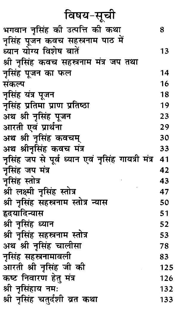 Method of worship of Lord Narasimha including Narasimha Stotra, Narasimha Kavach, Narasimha Chalisa, Narasimha Sahasranamaavali and Narasimha Chaturdashi fast story