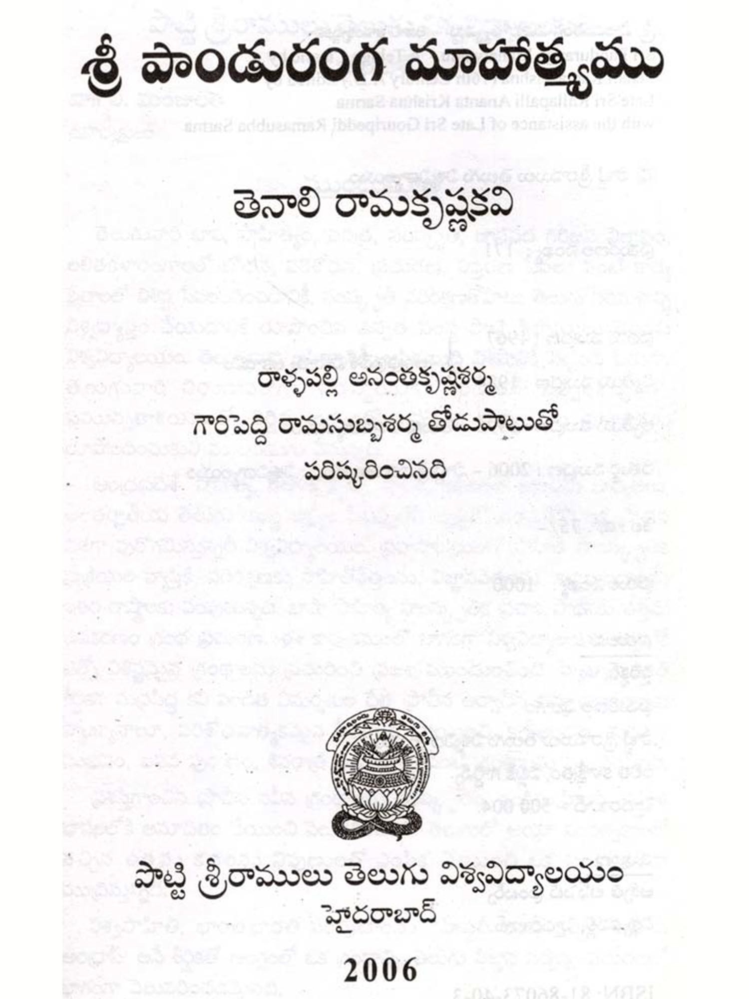 పాండురంగ మాహాత్మ్యము: Panduranga Mahatyam (Telugu)