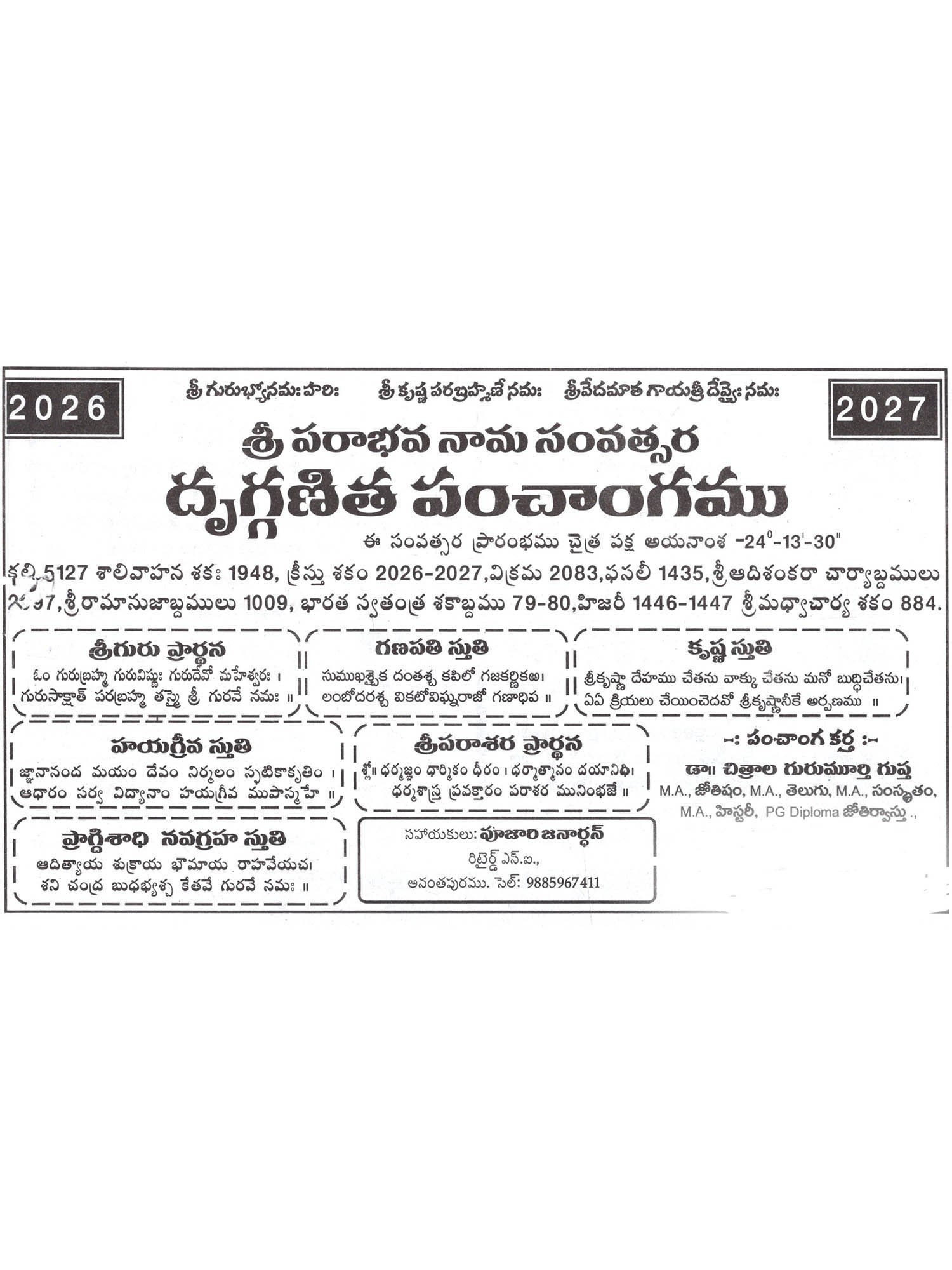 గంటల పంచాంగము- Gantala Panchangam 2026-2027 (Telugu)