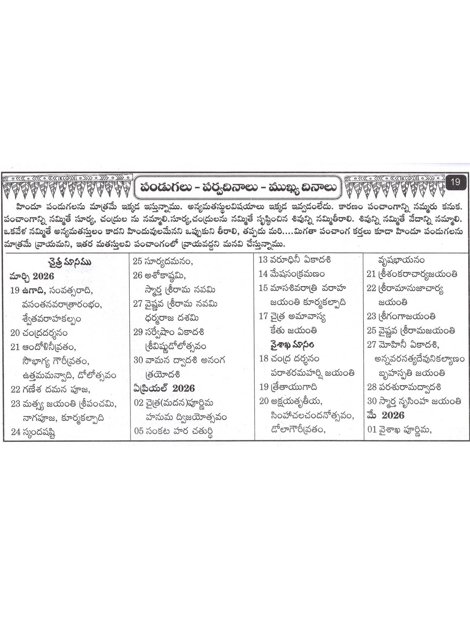 శ్రీ విశ్వావసు నామ సంవత్సర పంచాఙ్గమ్ 2025-2026: Sri Vishwavasu Nama Samsthra Panchangam 2025-2026 (Telugu)