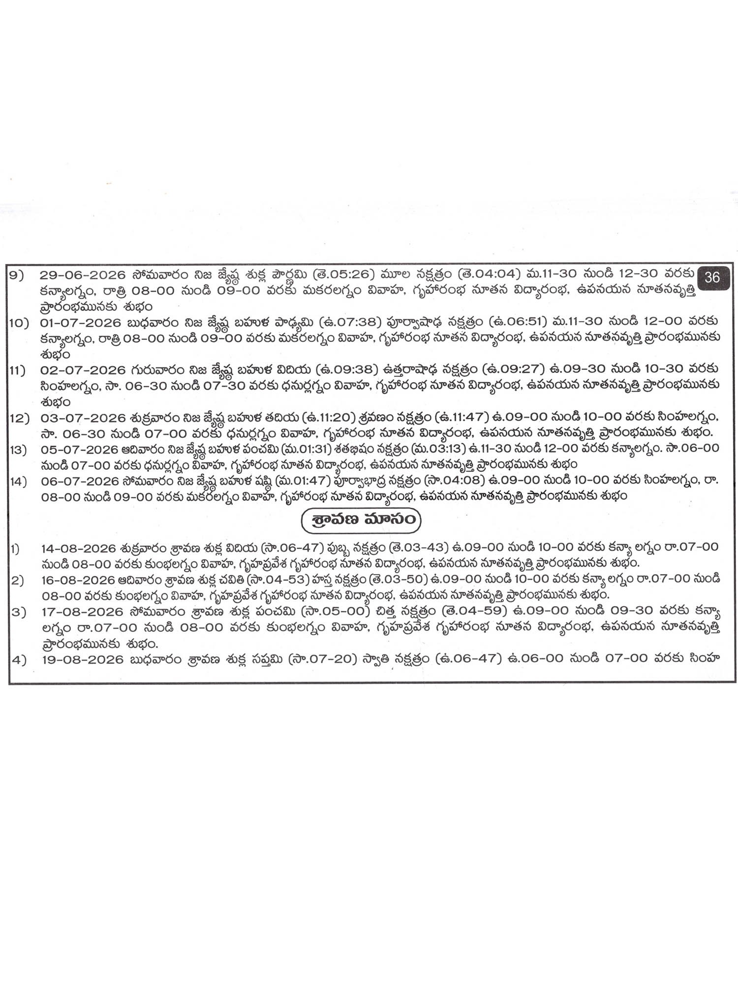 శుభతిథి గంటల పంచాంగము- Subhatidhi Gantala Panchangam 2024-2025 (Telugu)